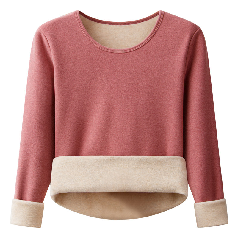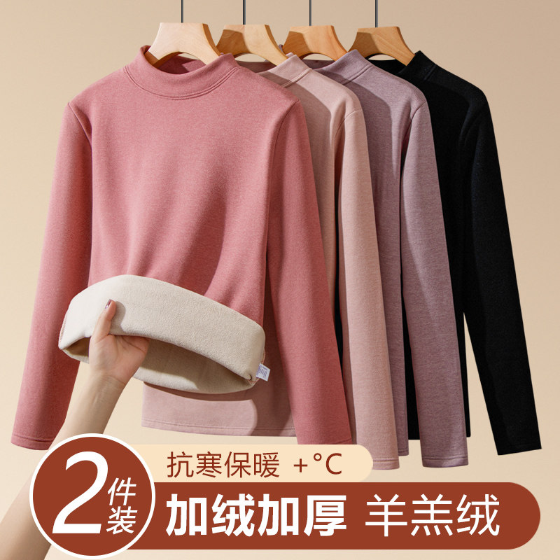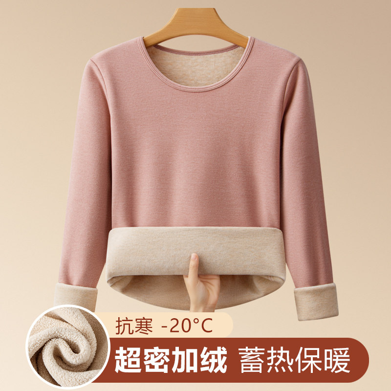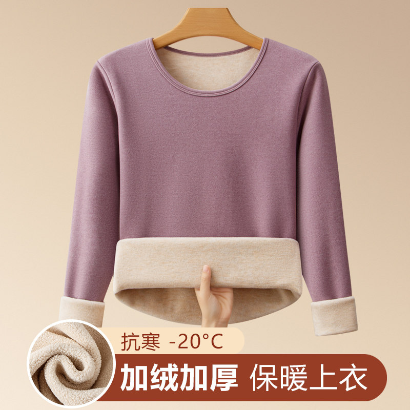 中老年保暖内衣女士加绒加厚内穿单件打底抗寒羊羔绒妈妈上衣冬季