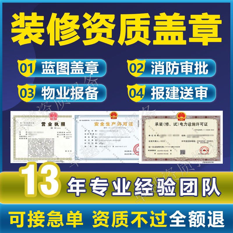 装修施工资质甲级设计资质监理资质蓝图盖章装修二级小散工程备案