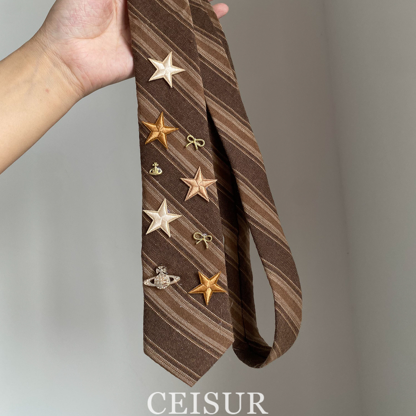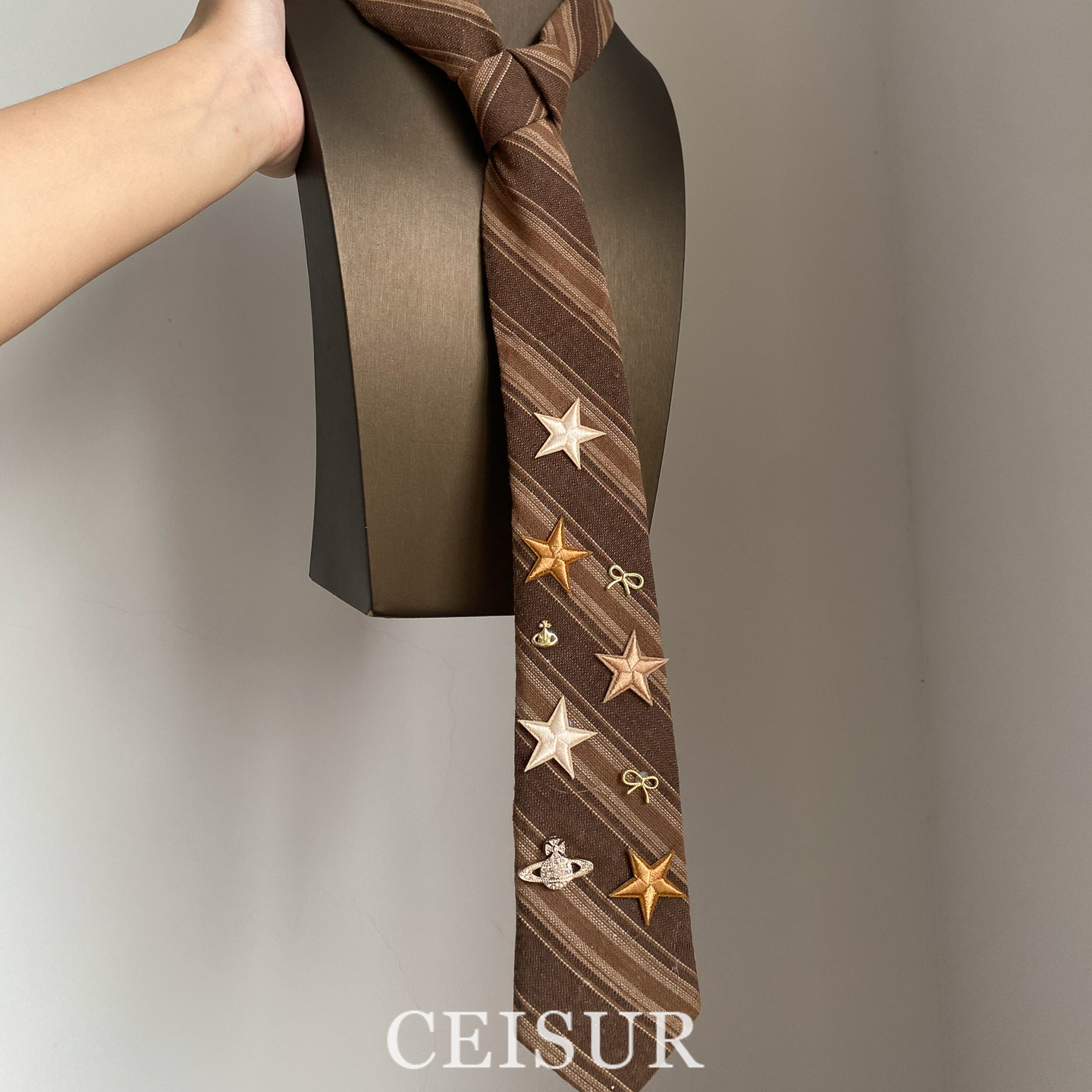 「土系海星原创」复古美拉德星星亚麻条纹领带创意小众y2k配衬衫