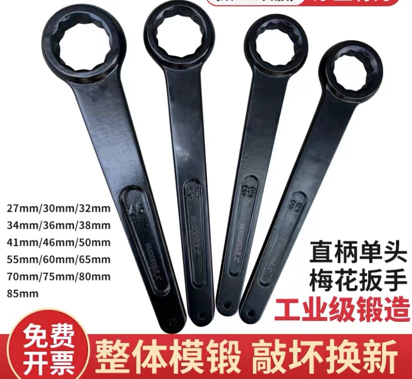 重型直柄单头梅花大扳手套筒12角整体锻造锤击加长工业级扳手