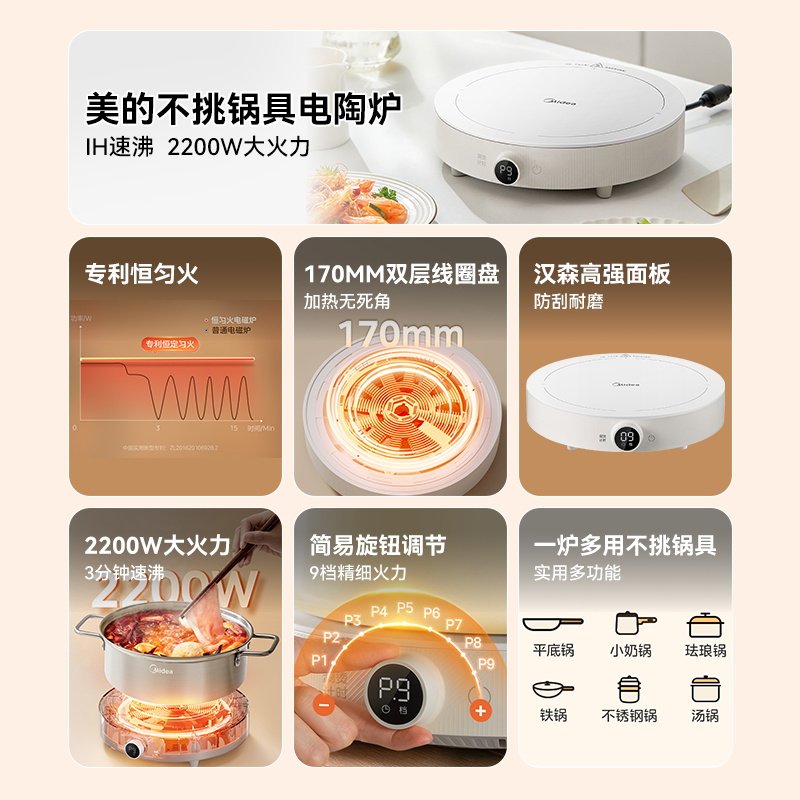美的电陶炉家用电磁炉IH速沸小型大功率火锅专用炒菜一体2026新款