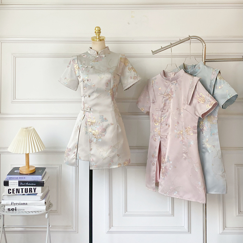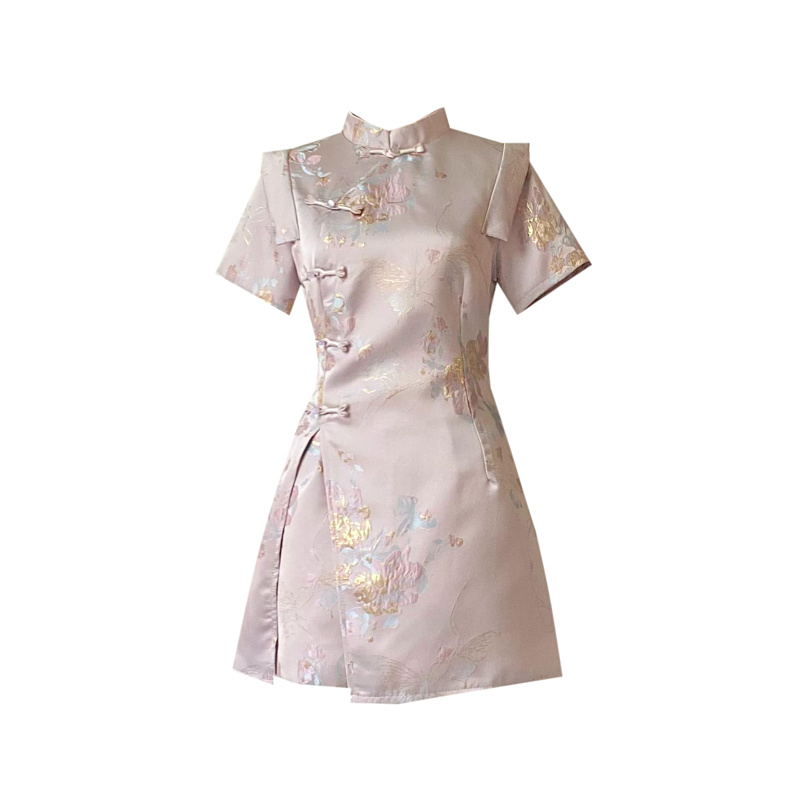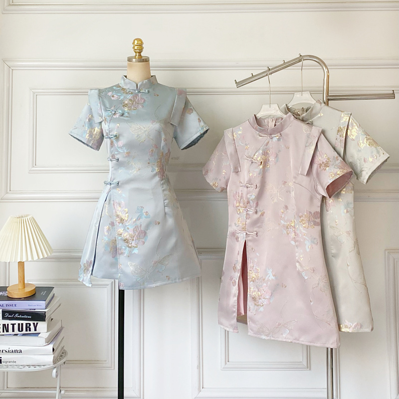 新中式复古气质盘扣短袖旗袍连衣裙+高腰显瘦阔腿短裤两件套女