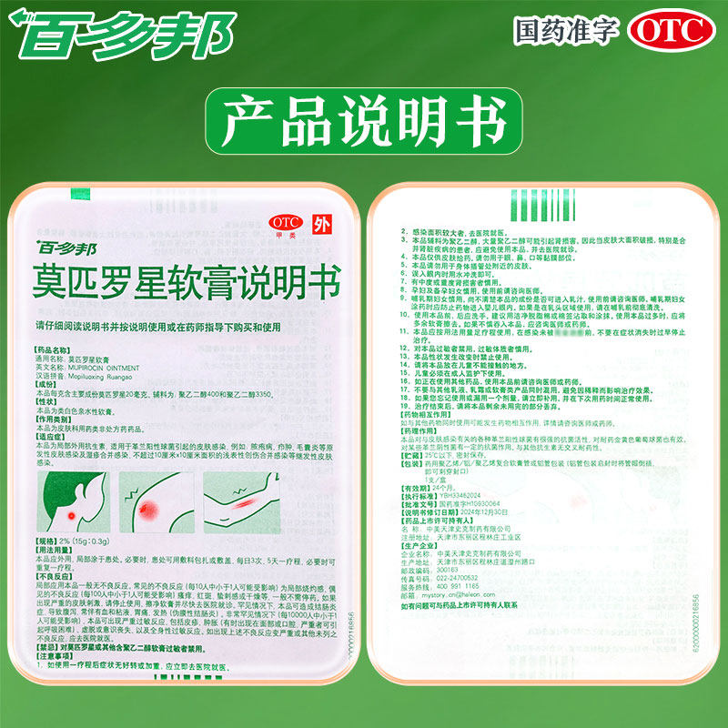 百多邦莫匹罗星软膏15g毛囊炎皮肤感染脓疱病湿疹旗舰店正品