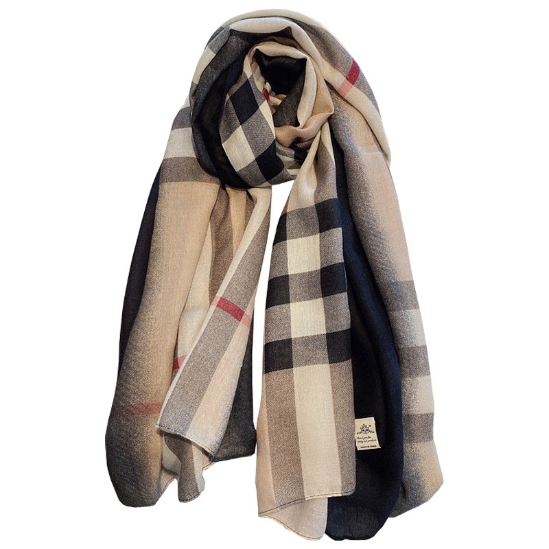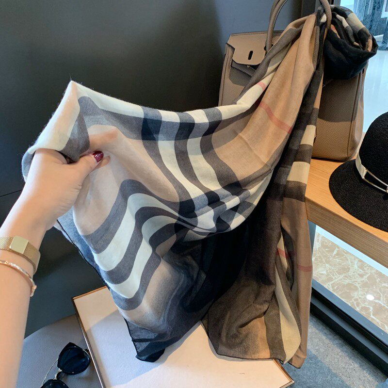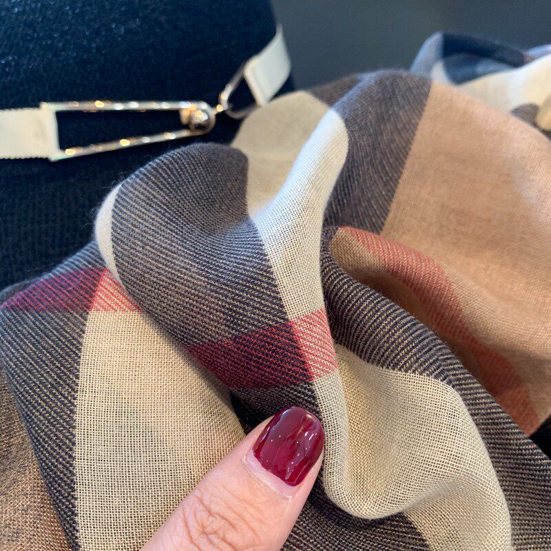 韩国东大门新款韩版棉麻格子围巾女春秋保暖纱巾大尺寸披肩沙滩巾