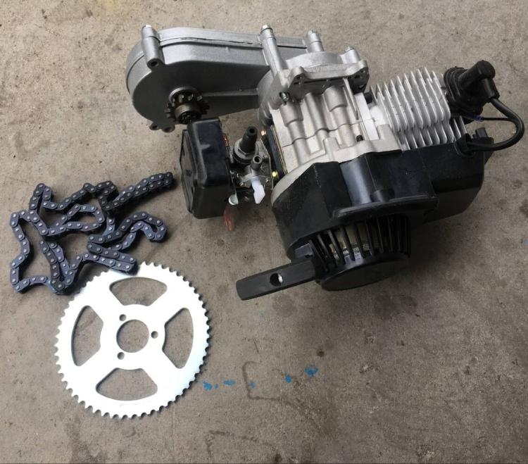 改装自行车汽油机二冲程49CC变速箱迷你越野发动机气缸体加长排气