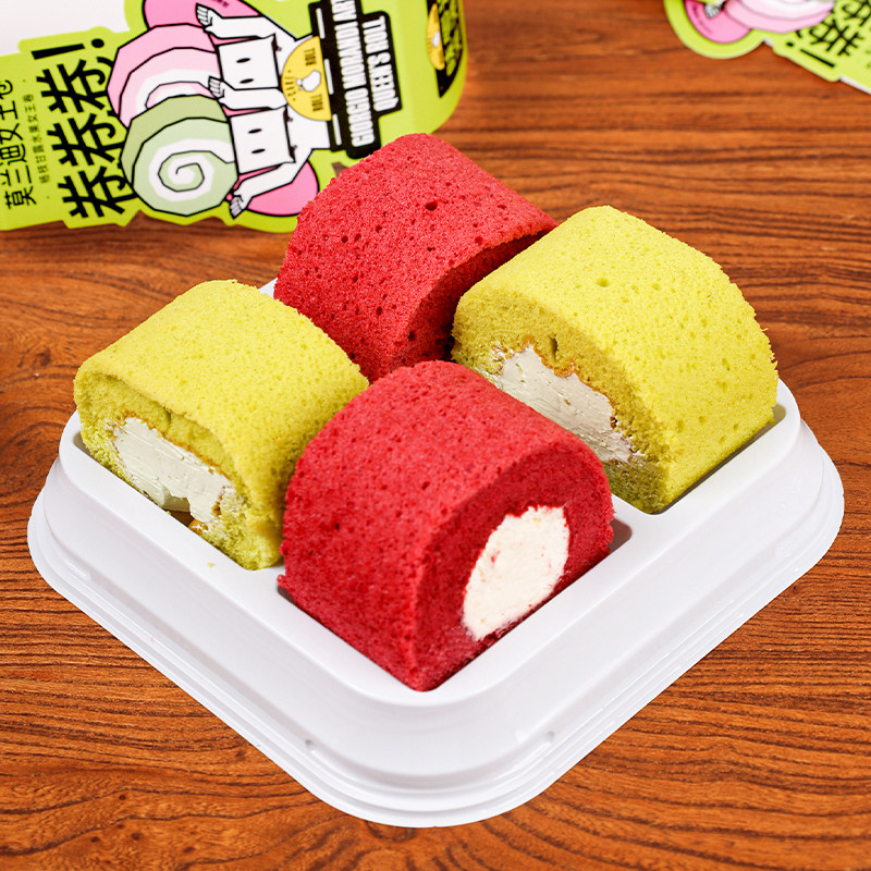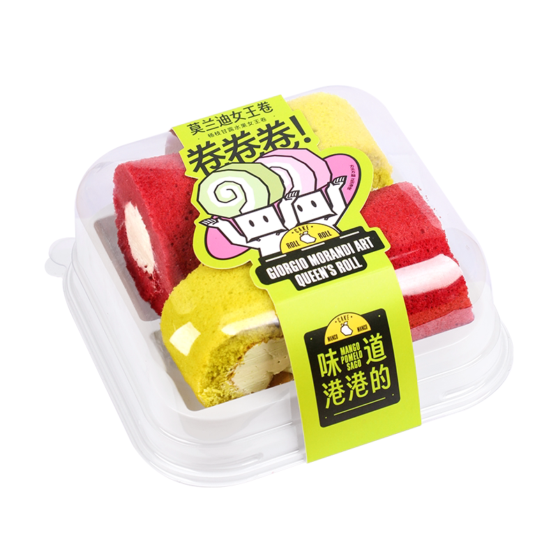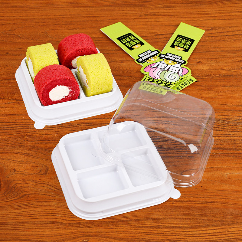 烘焙包装四个装莫兰迪女王卷西点盒抹茶红丝绒巧克力切块蛋糕卷盒