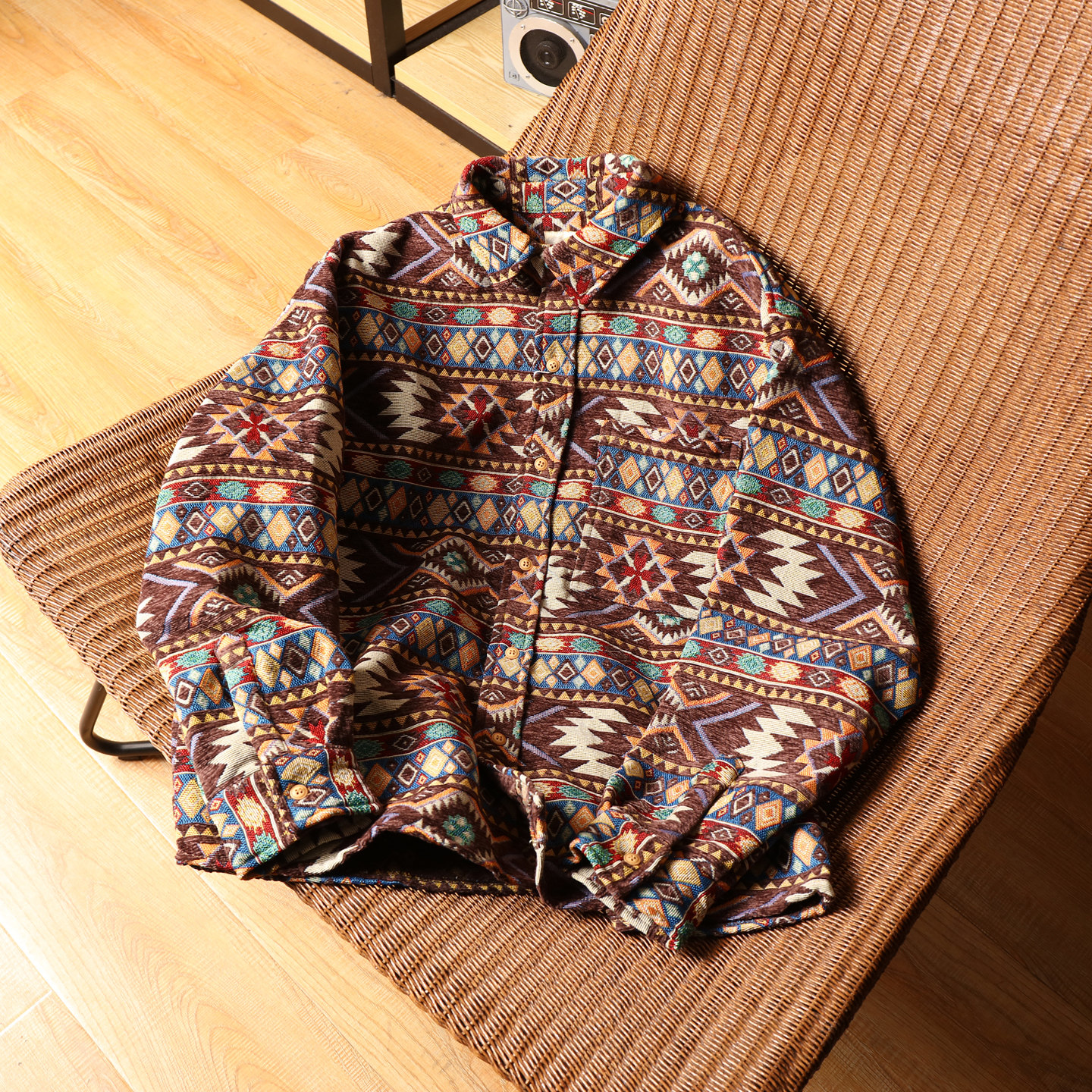 文艺老钱风费尔岛巴洛克民族风提花重磅长袖衬衫日系休闲叠穿外套