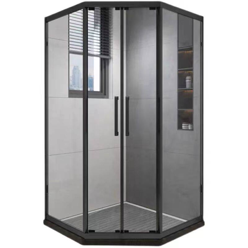 钻石型淋浴房侧移门侧滑门下沉式干湿分离玻璃隔断极窄双开推拉门