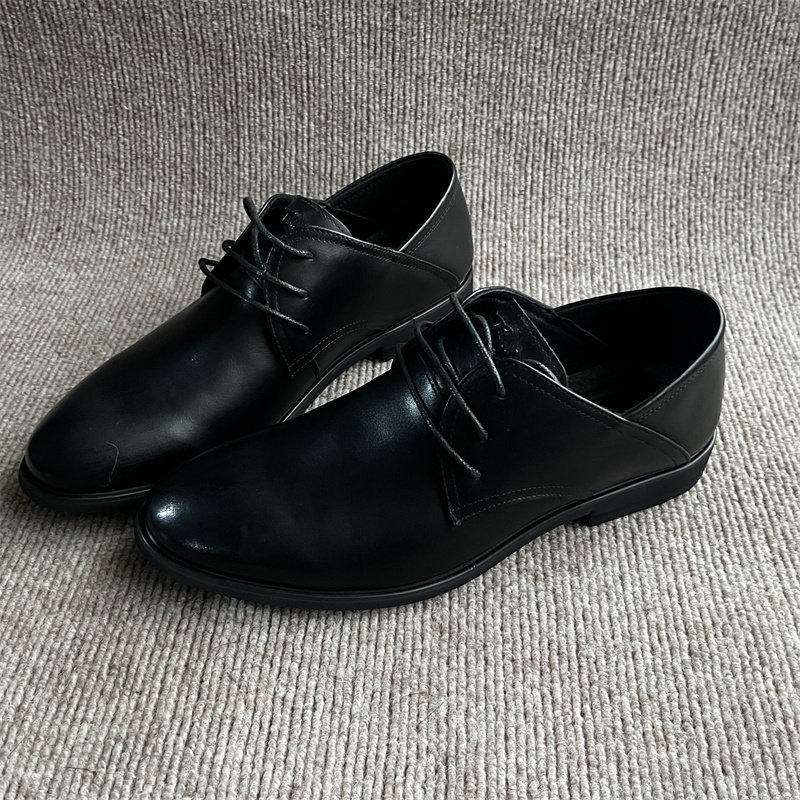 43码真皮流行男鞋头层牛皮正装通勤圆头黑色系带商务男皮鞋公牛