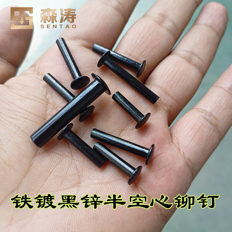 M4m5黑锌半空心铁铆钉扁圆头中空钉尾孔柳丁毛顶卯可定做非标英标