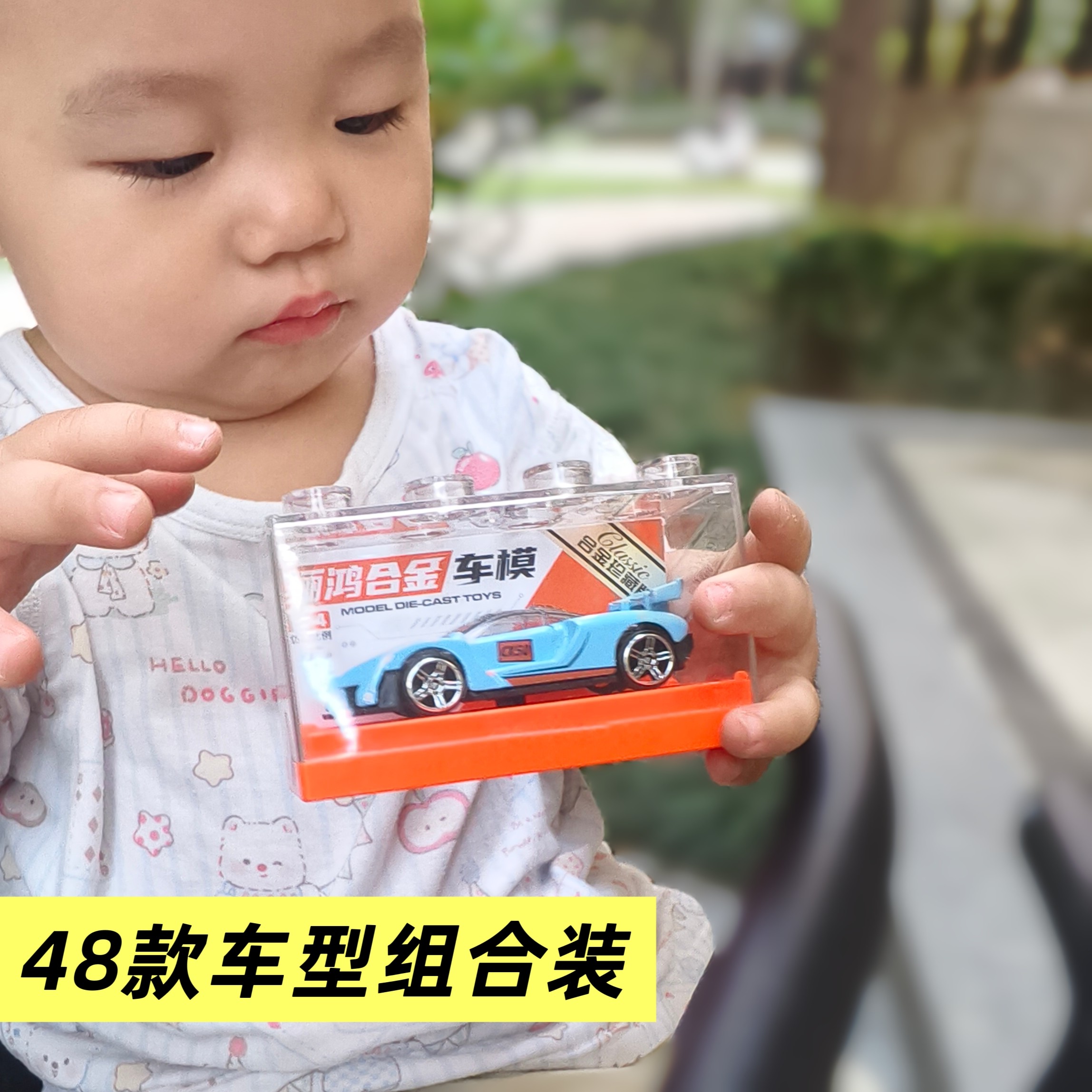 仿真合金小汽车模型套装赛车收藏玩具车摆件幼儿园儿童礼物积木盒