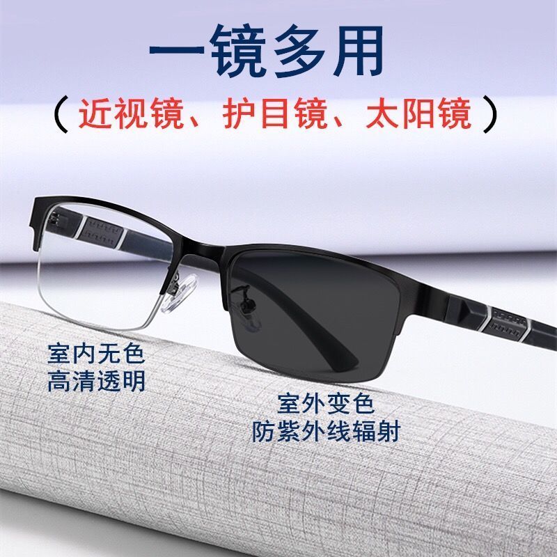 变色近视眼镜男半框金属眼镜平光防辐射防蓝光抗疲劳护目遮阳墨镜