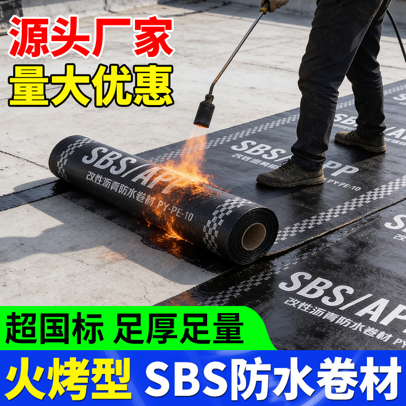 SBS火烤型防水卷材屋顶沥青补漏材料4.0mm加厚隔热防潮热熔卷材