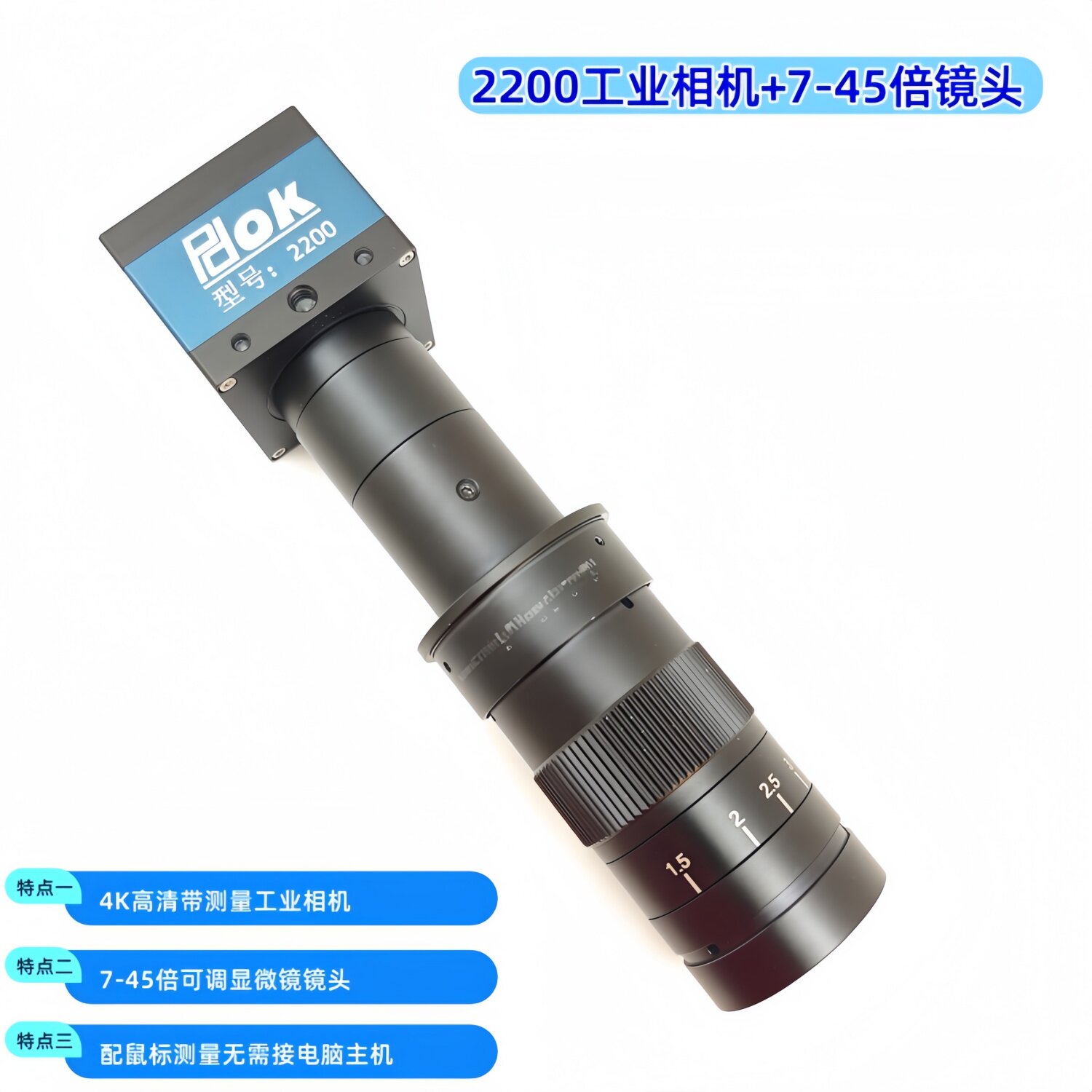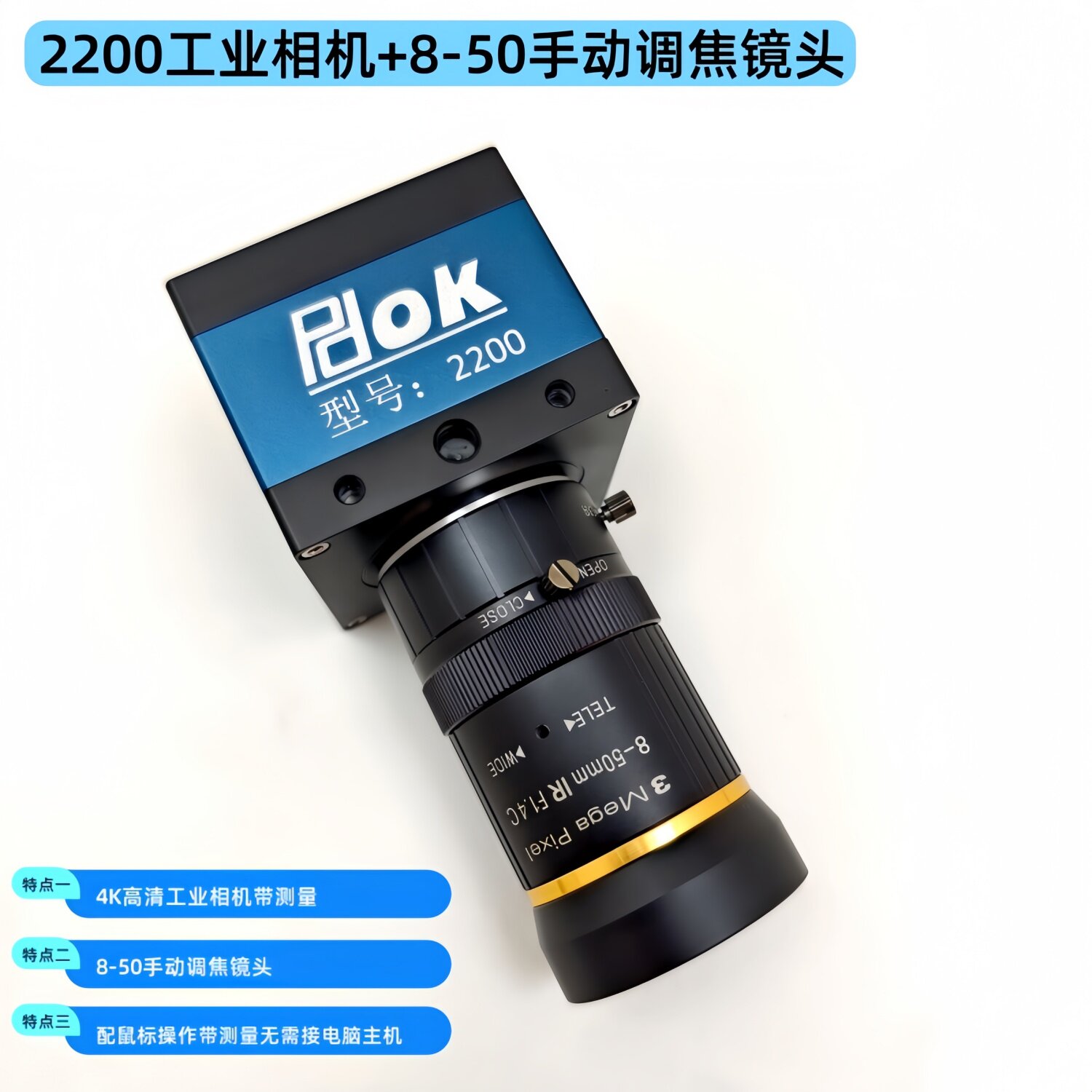 4K高清工业相机CCD摄像头机器视觉镜头VGA电子目镜HDMI与USB显微镜100倍放大定位测量定焦8-50mm机器C接口