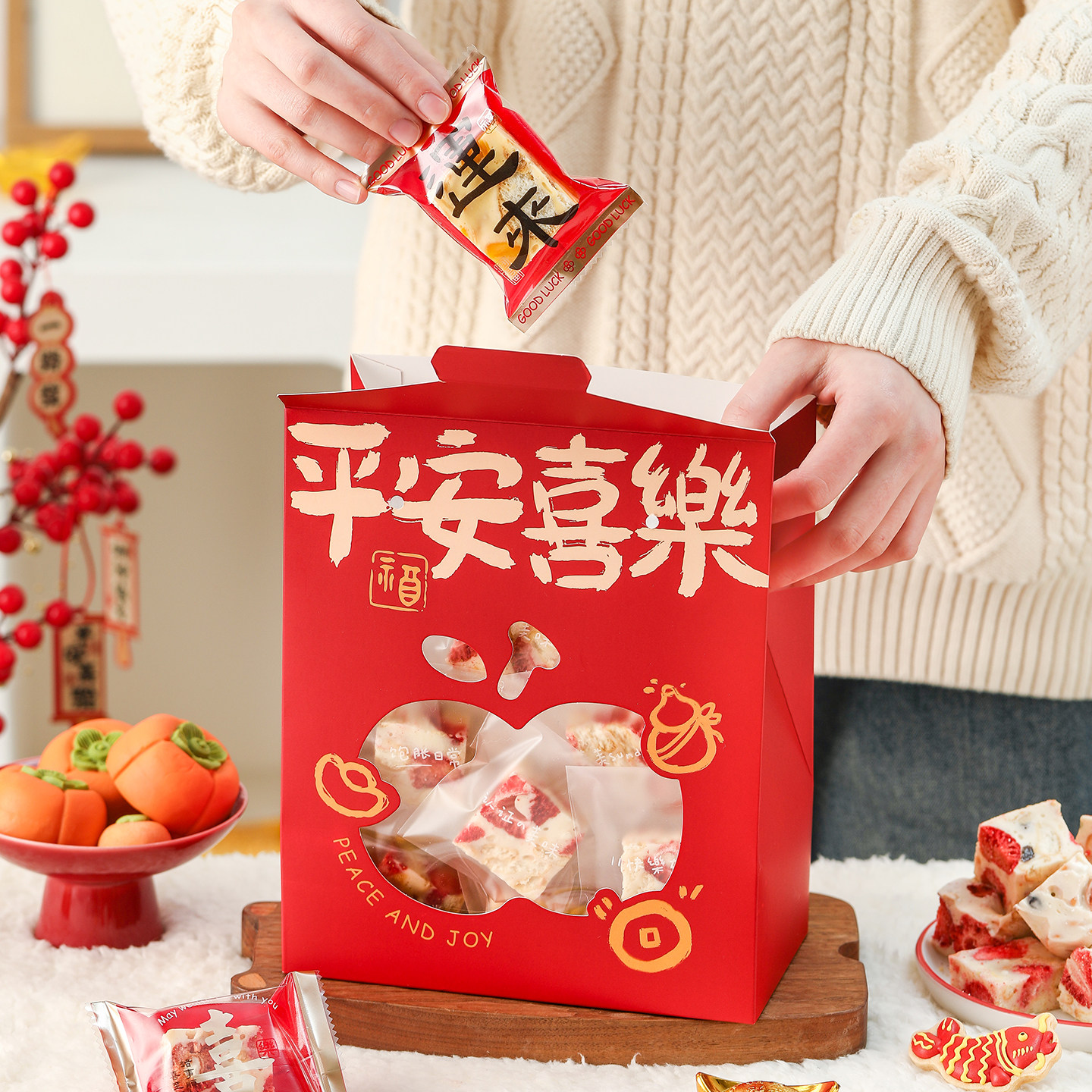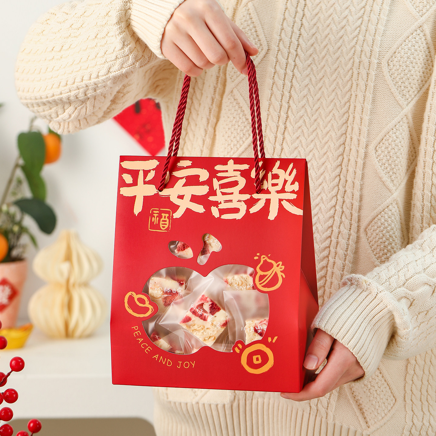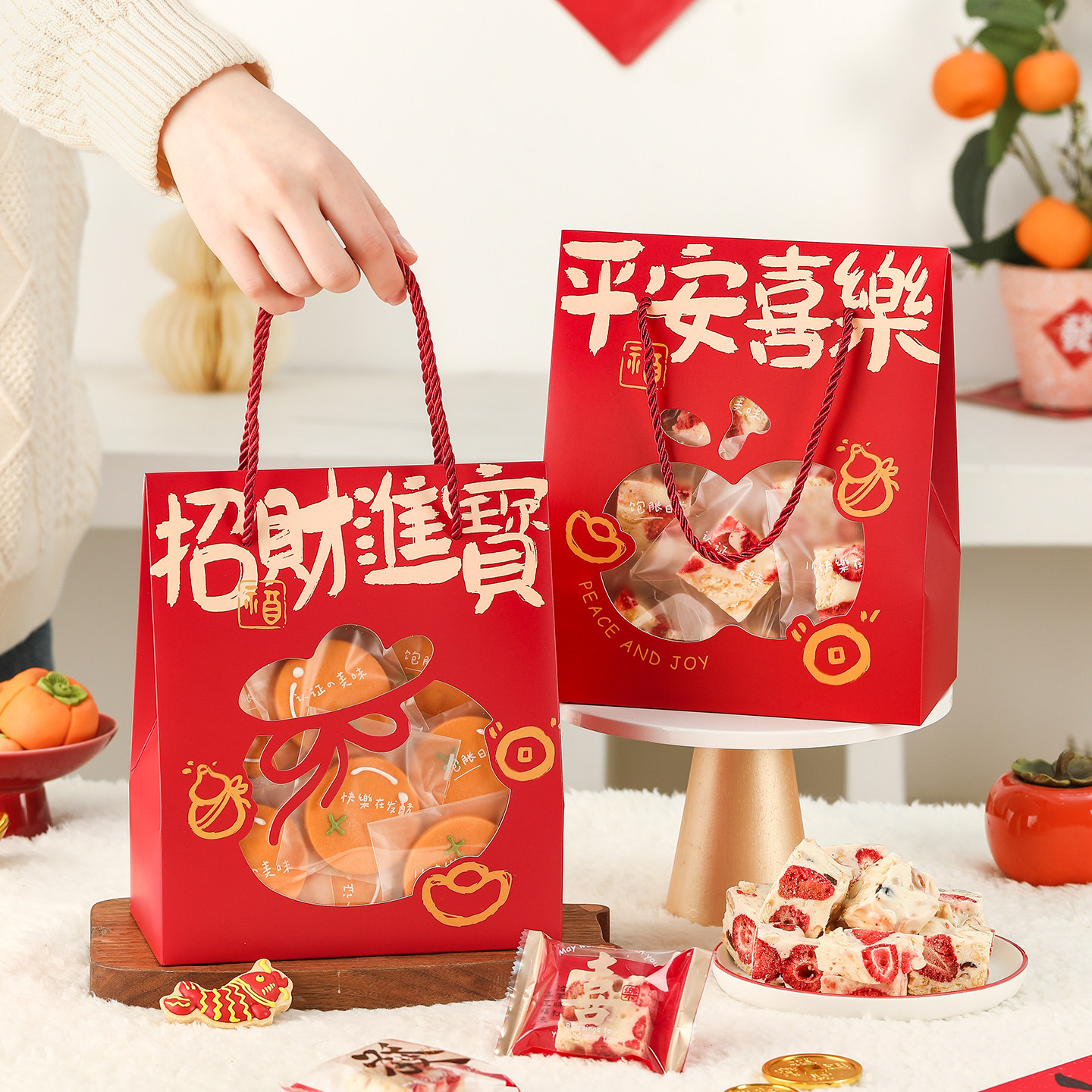 2026新年包装盒雪花酥曲奇饼干太妃牛轧糖果糯米船打包手提空袋子