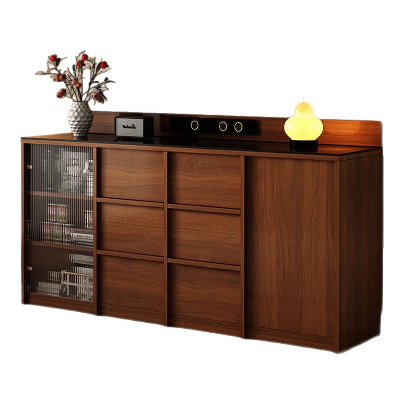 中古风岩板餐边柜靠墙一体储物柜客厅茶水柜置物柜定制骨骼线矮柜