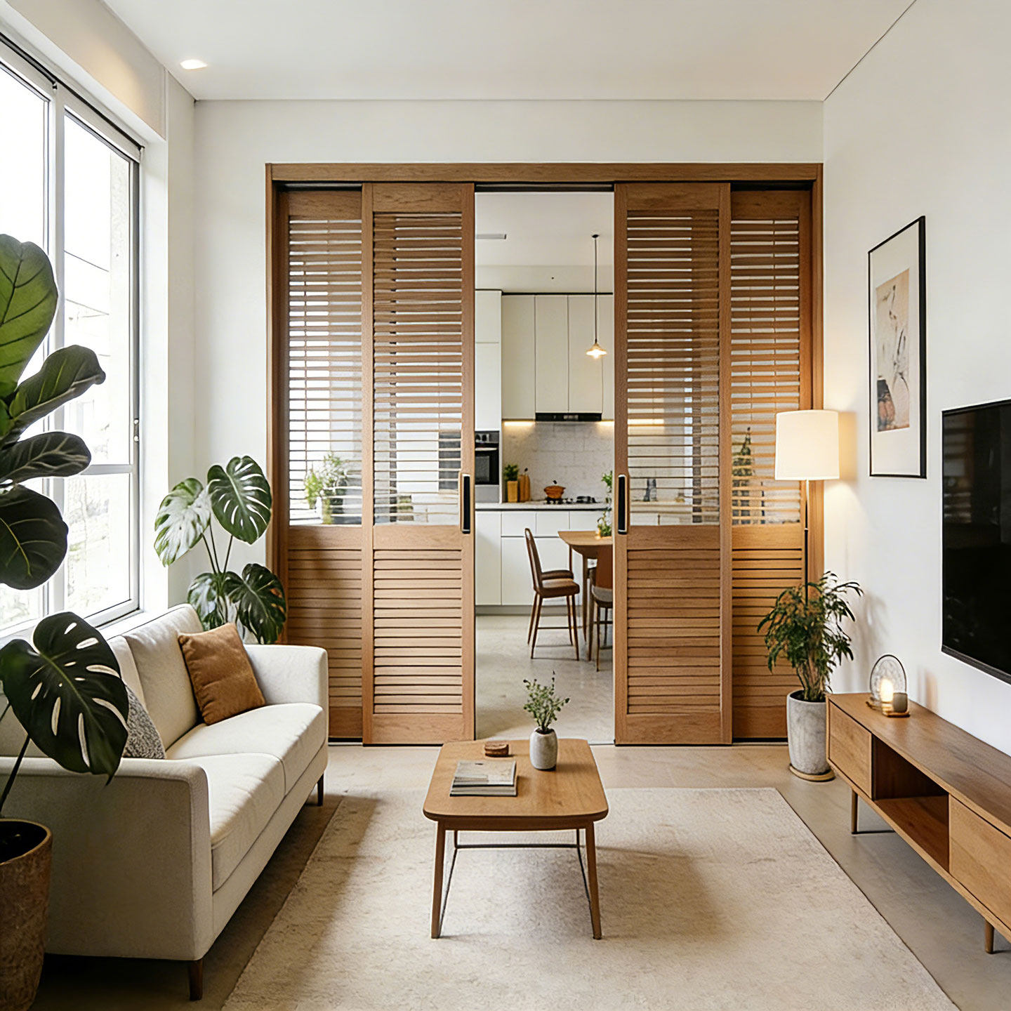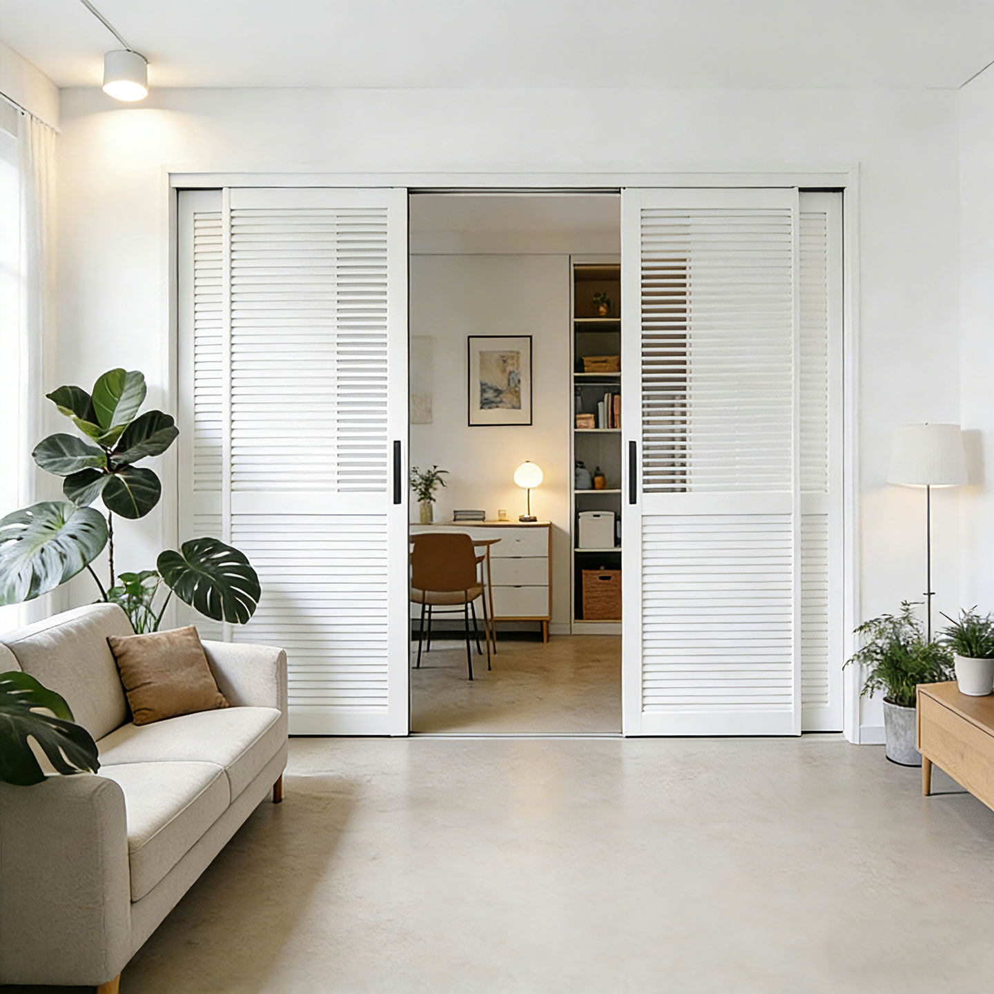百叶门定制吊轨推拉门室内隔断门奶油风衣柜推拉门阳台百叶隔断门