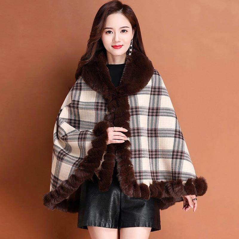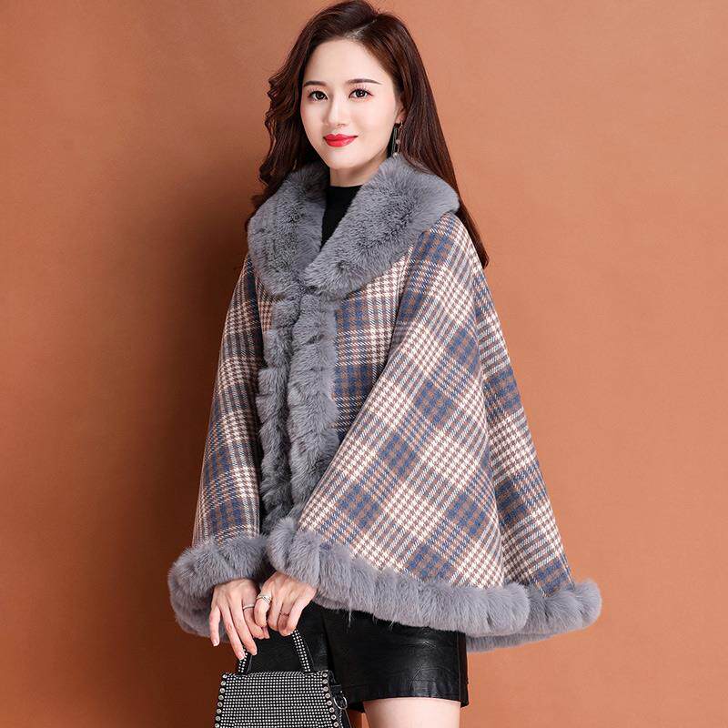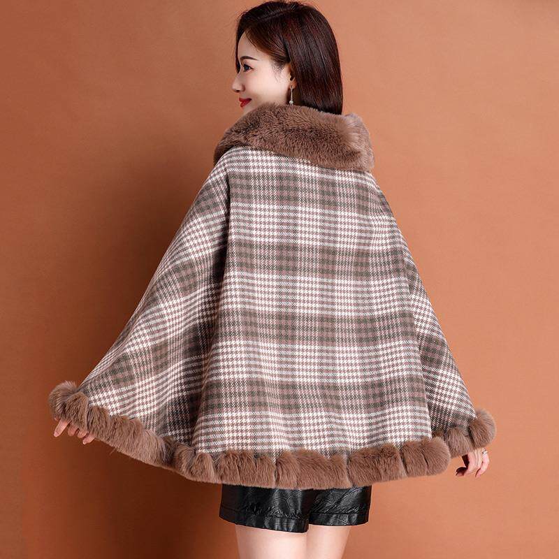 斗篷披肩外套女士秋冬季2025新款配旗袍加厚披风中年妈妈格子外搭