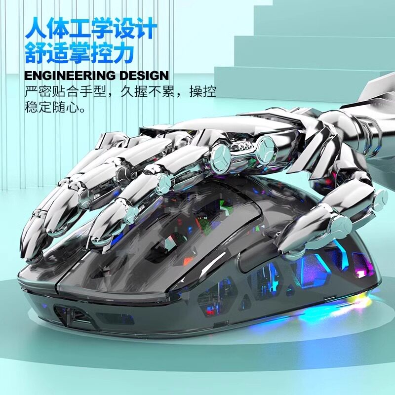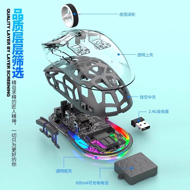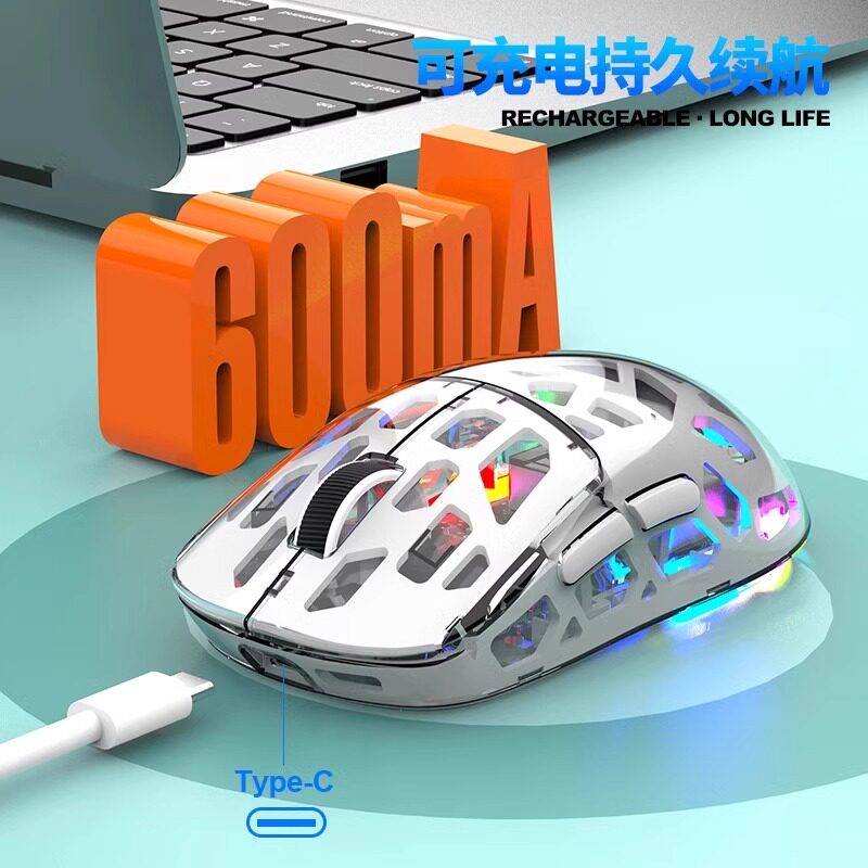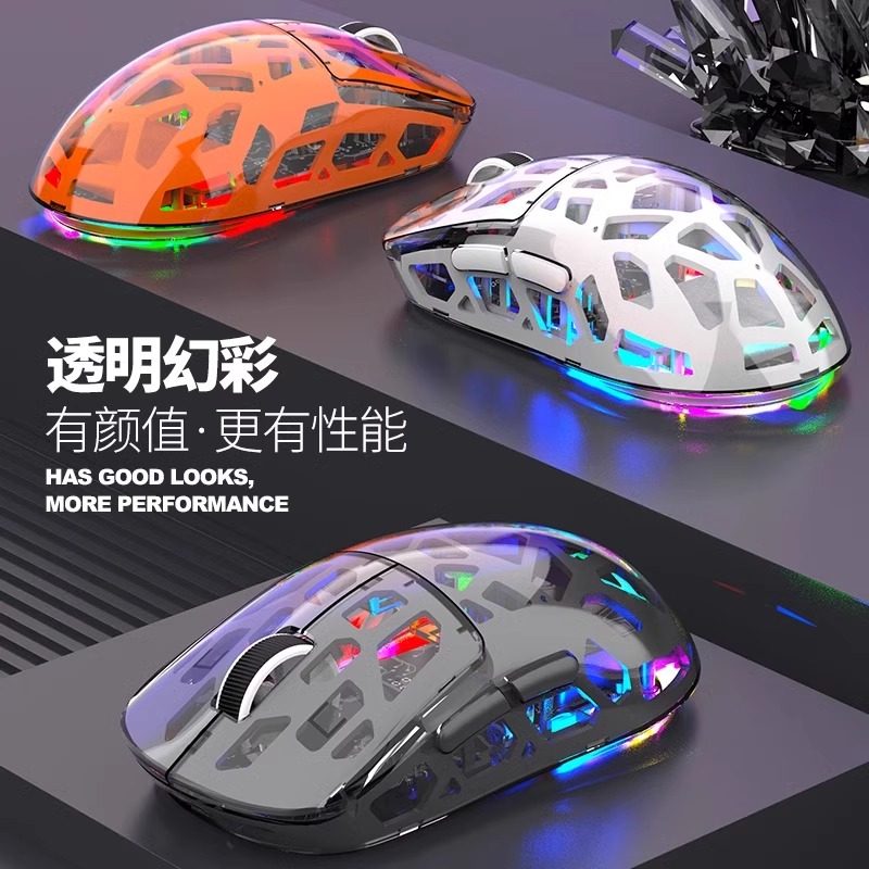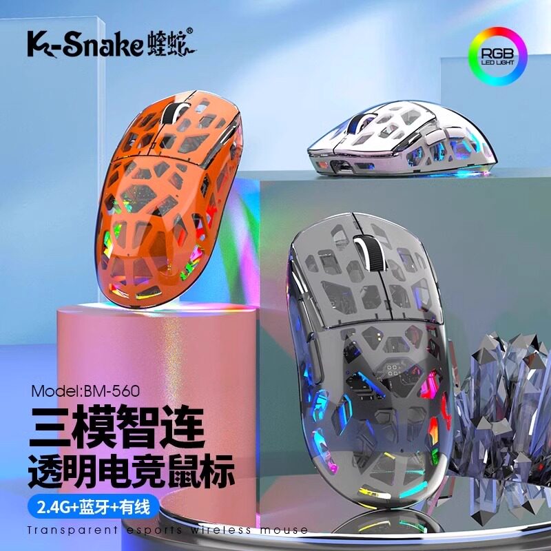 蝰蛇BM560无线蓝牙三模游戏鼠标电竞RGB发光充电透明镂空办公台式