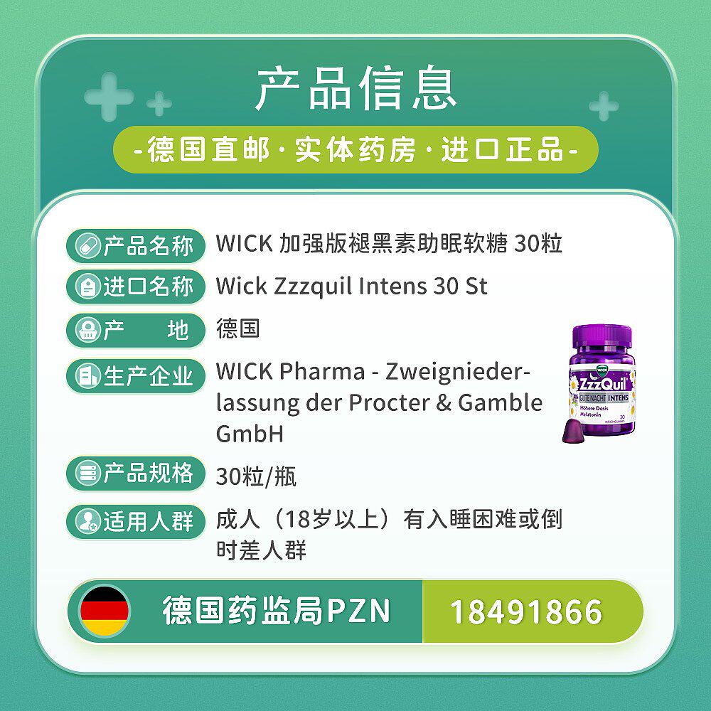 欧洲直邮德国药房WICK维克加强版褪黑素软糖30粒入睡倒时差助睡眠