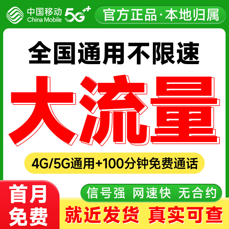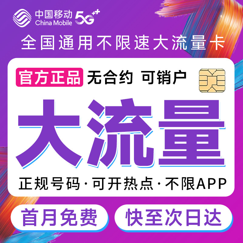 流量卡中国移动流量卡纯流量上网卡全国通用5g大流量手机卡电话卡