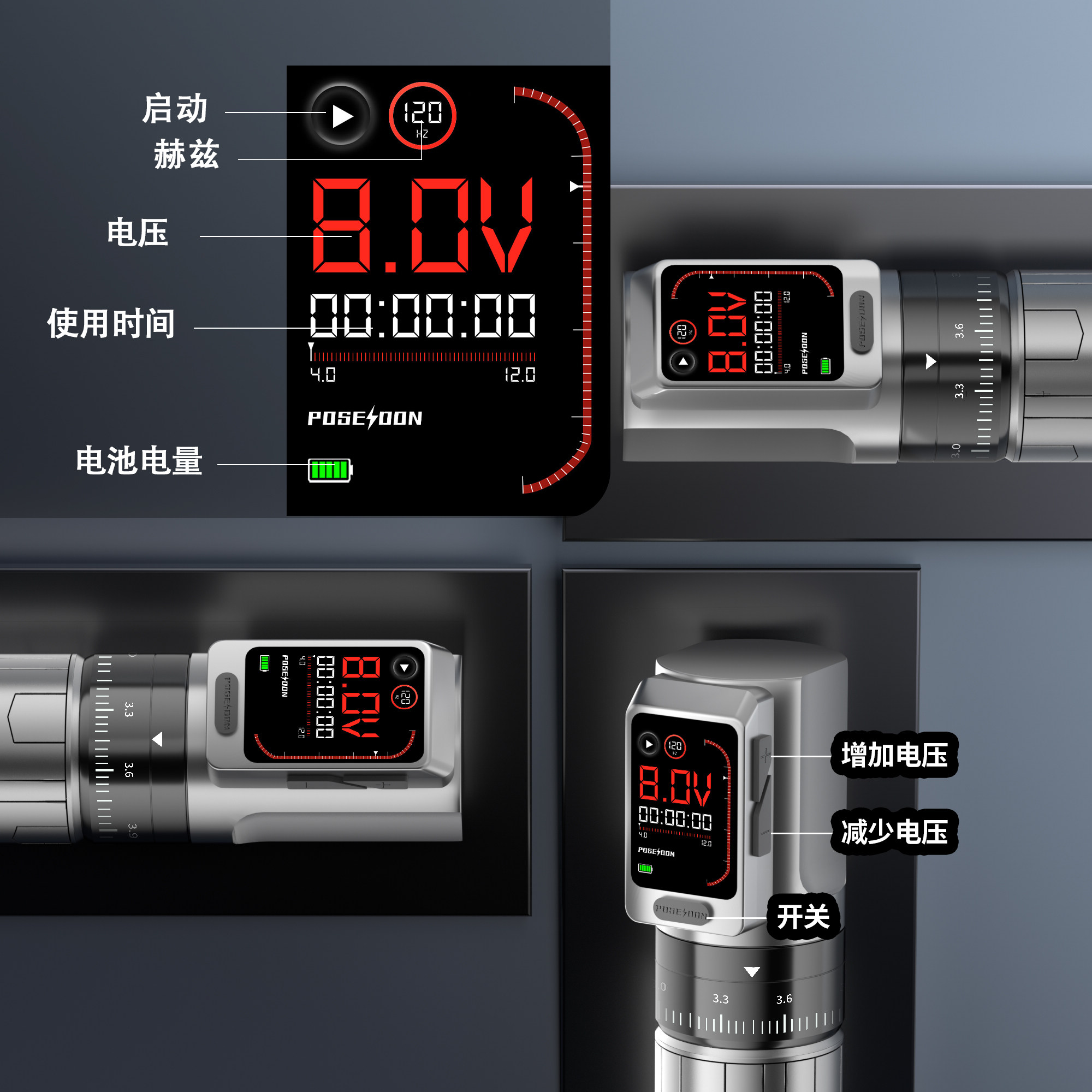 波塞冬新款纹身笔空心杯电机双手柄双电池带转接头波塞冬纹身器材