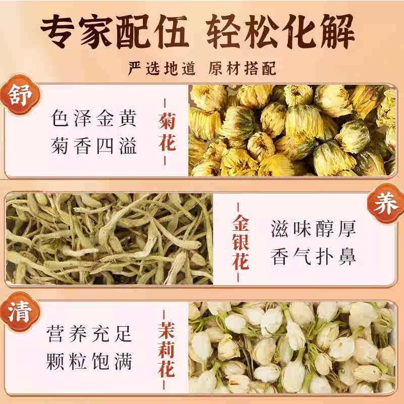 金银花菊花茉莉花茶包清下火三花茶泡水喝的养生茶正品官方旗舰店