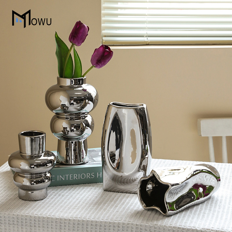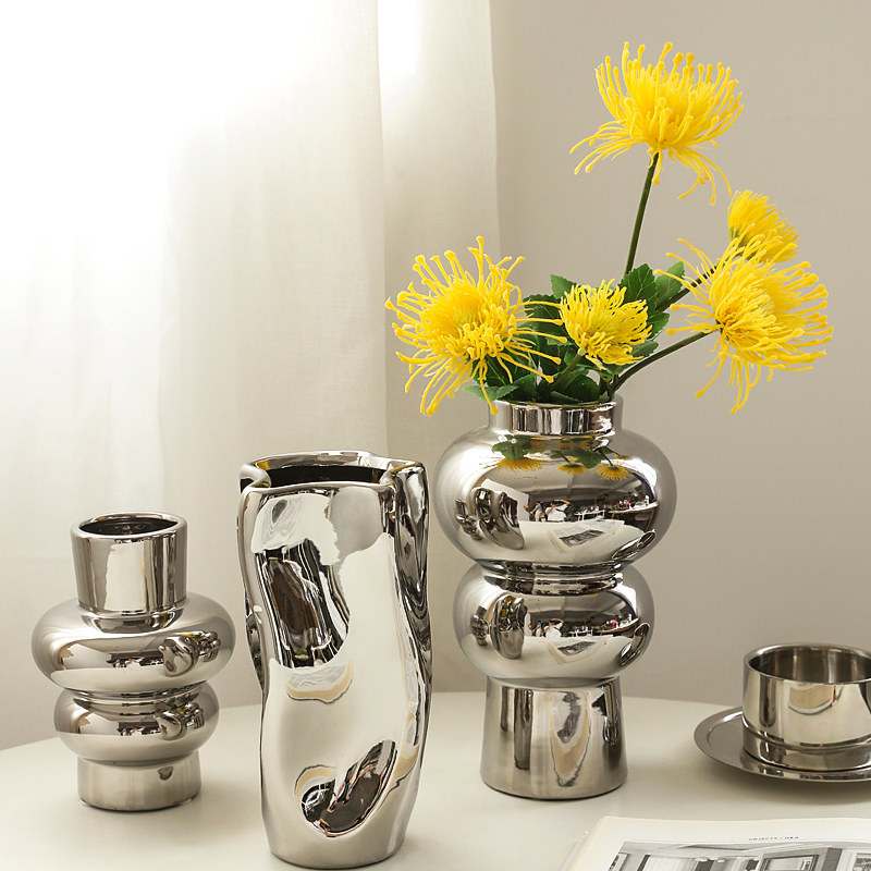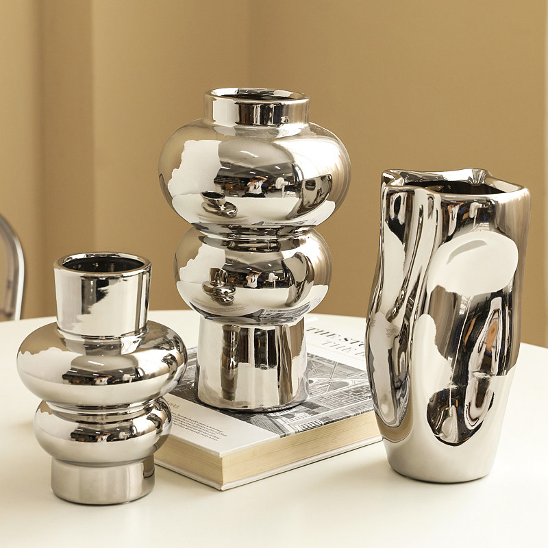 电镀银色花瓶餐桌摆件高级感轻奢网红客厅插花艺术家居卧室装饰品