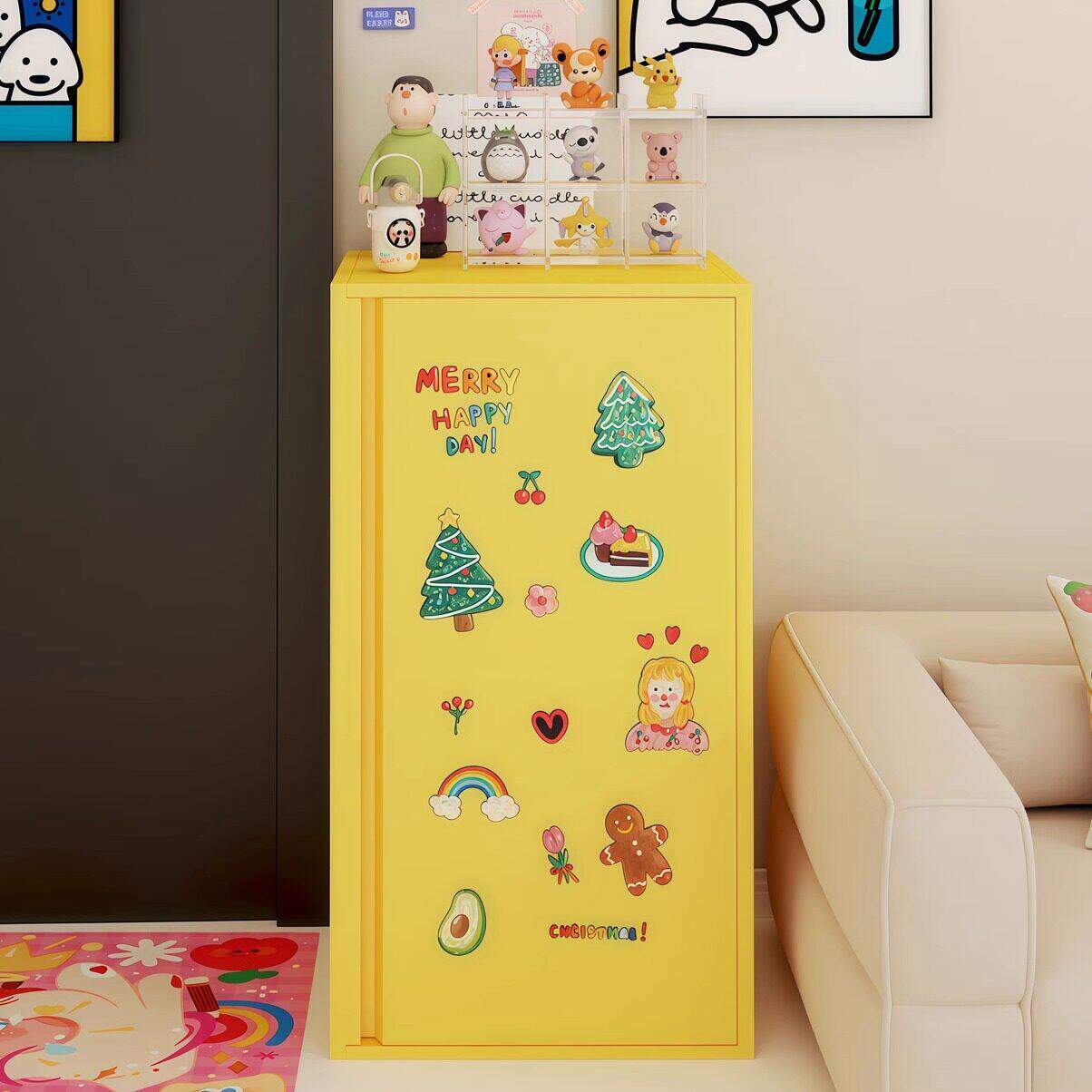 多巴胺床头收纳柜卧室床边多巴胺铁皮零食柜家用大容量置物单门柜