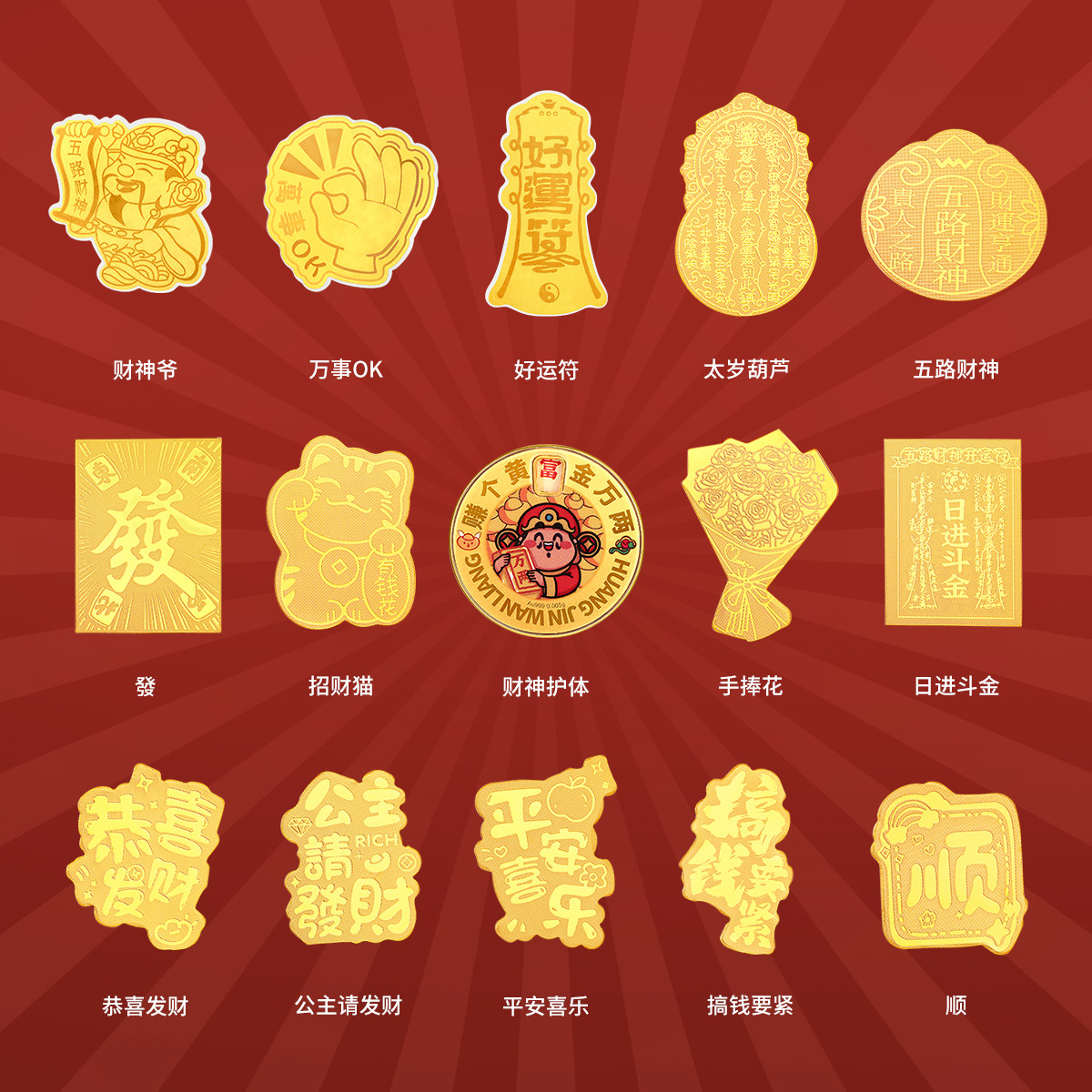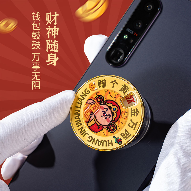 梦金园黄金手机贴公主请发财护身符金箔贴纸足金手捧花金片送女友
