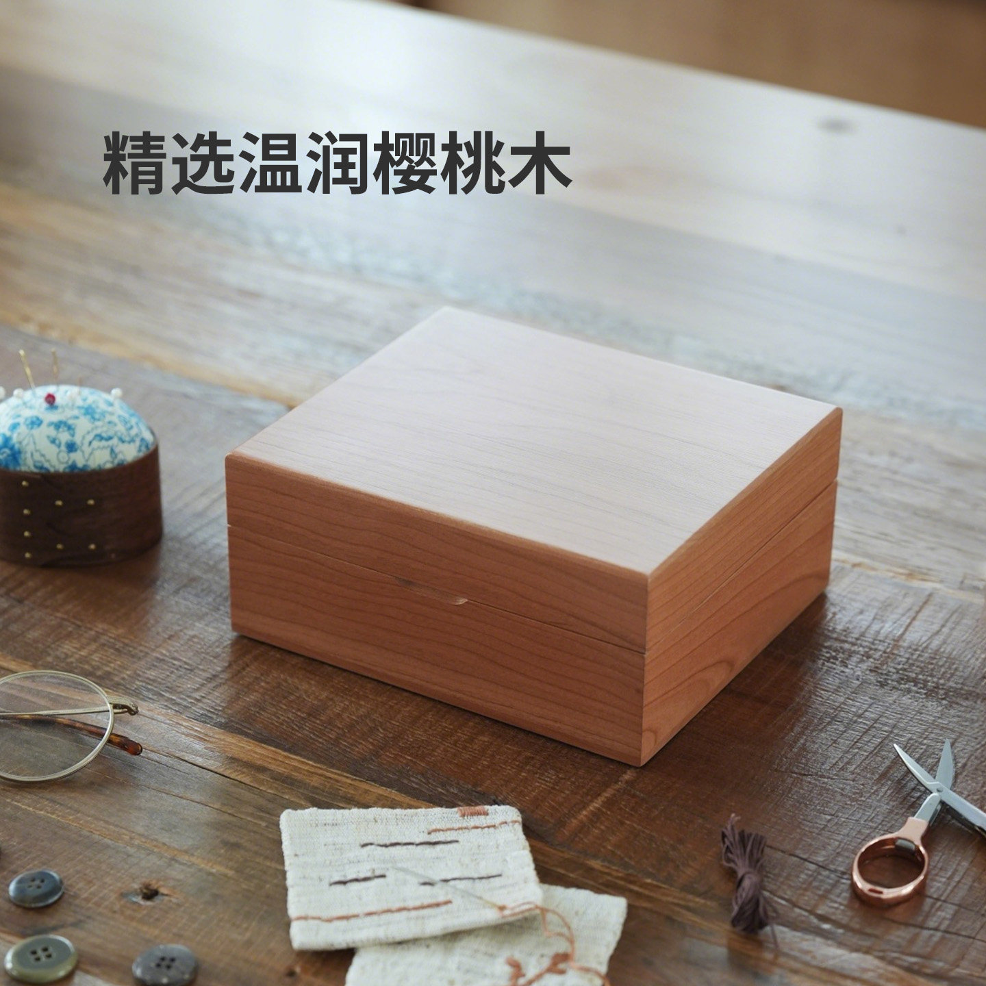 霜山实木收纳盒复古首饰盒手工缝纫针线盒手帐印章胶带桌面整理盒