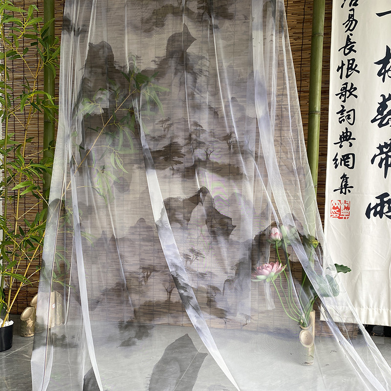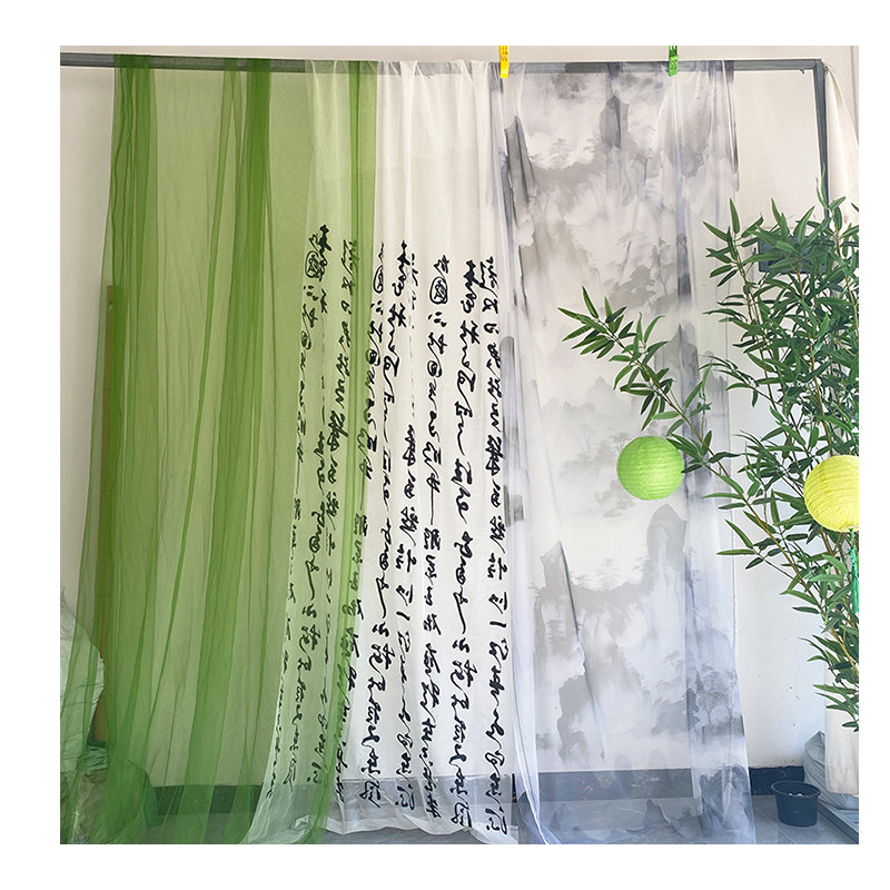 绿色渐变扎染纱幔网纱布料新中式古风婚庆背景装饰荷花节场景布置