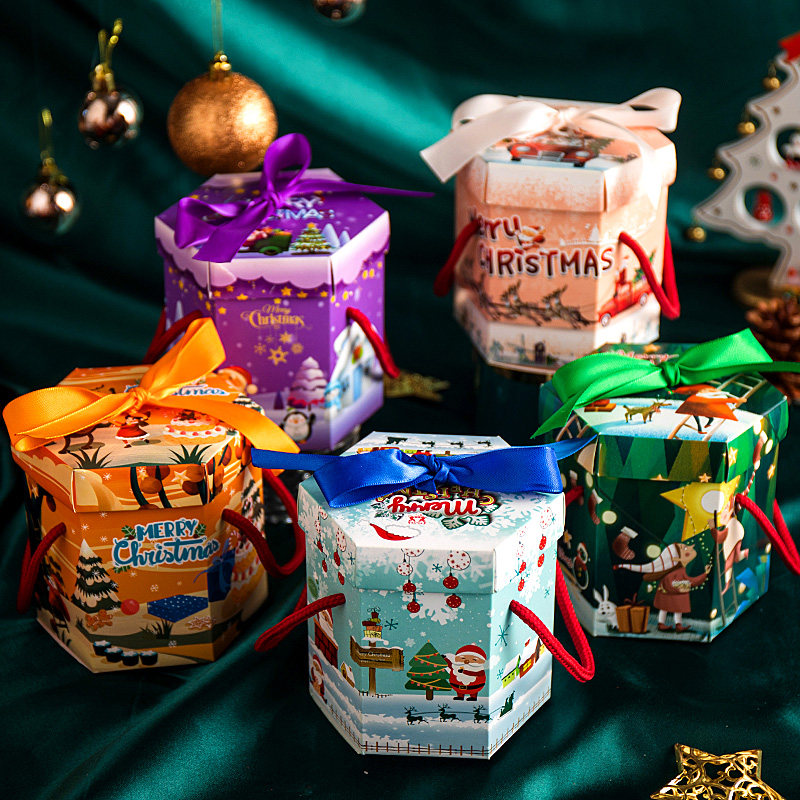 平安夜苹果盒装饰礼品礼盒六边形礼物包装袋圣诞节儿童礼物平安果