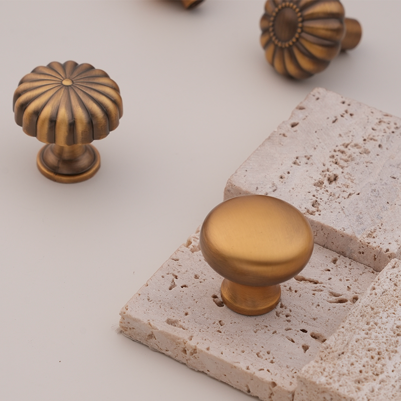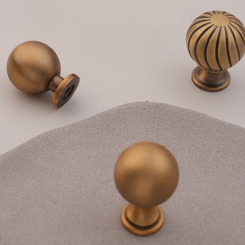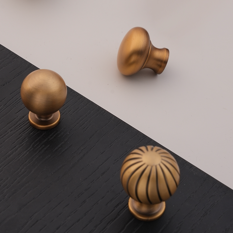 法式黄铜拉手衣柜门抽屉柜子橱柜简约单孔小把手中古风复古古铜色
