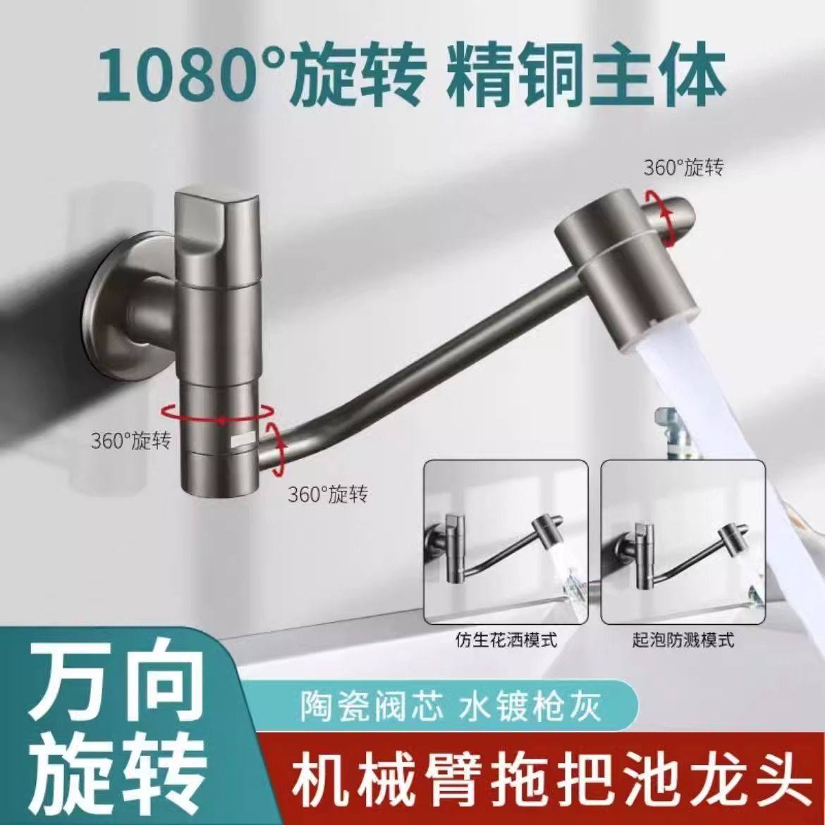单冷入墙式万向机械臂龙头可旋转万向横式洗衣池拖把池水龙头家用