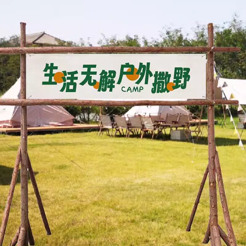 户外露营横幅挂布定制门头摊位市集招牌装饰布帐篷旗帜背景广告布