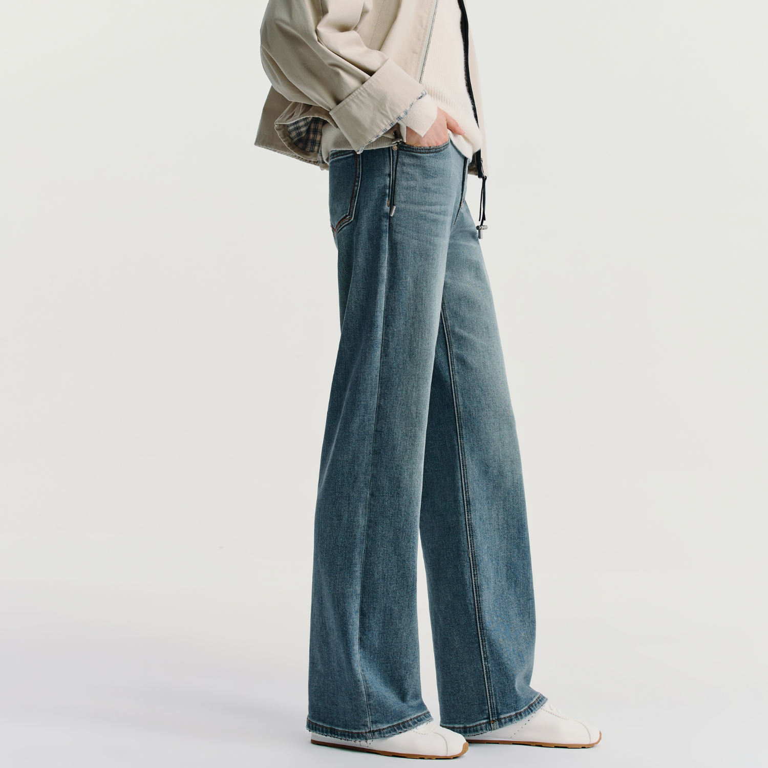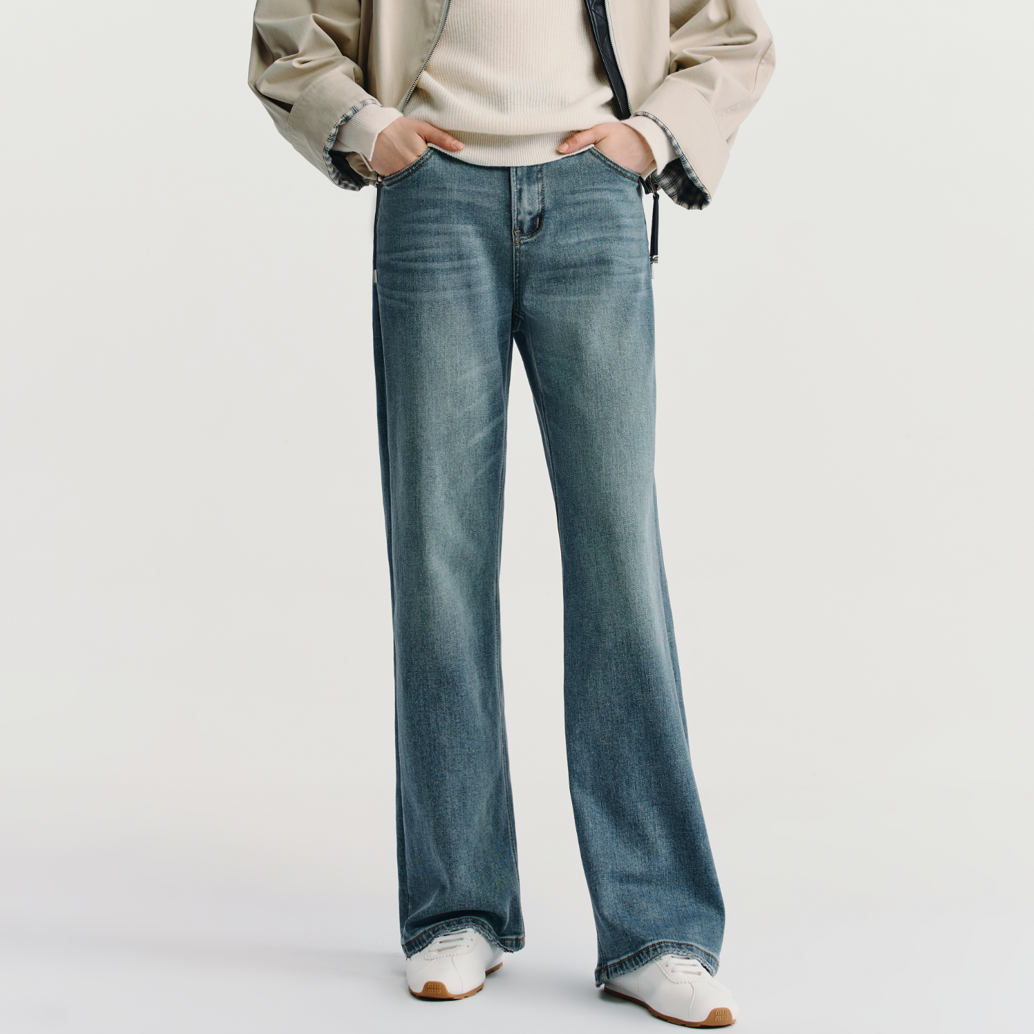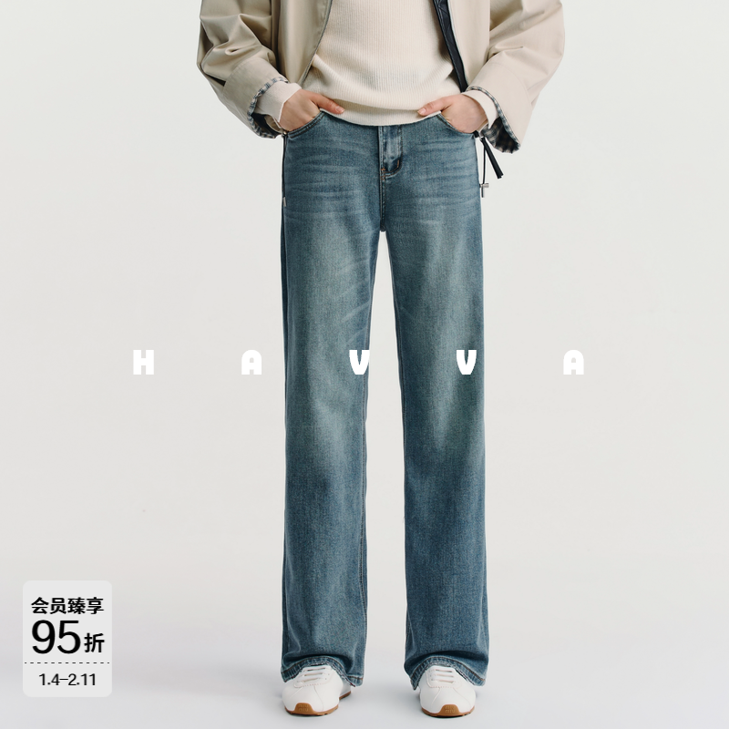 HAVVA水洗加绒加厚直筒牛仔裤舒适显瘦女士裤子2025冬季KH3-3798