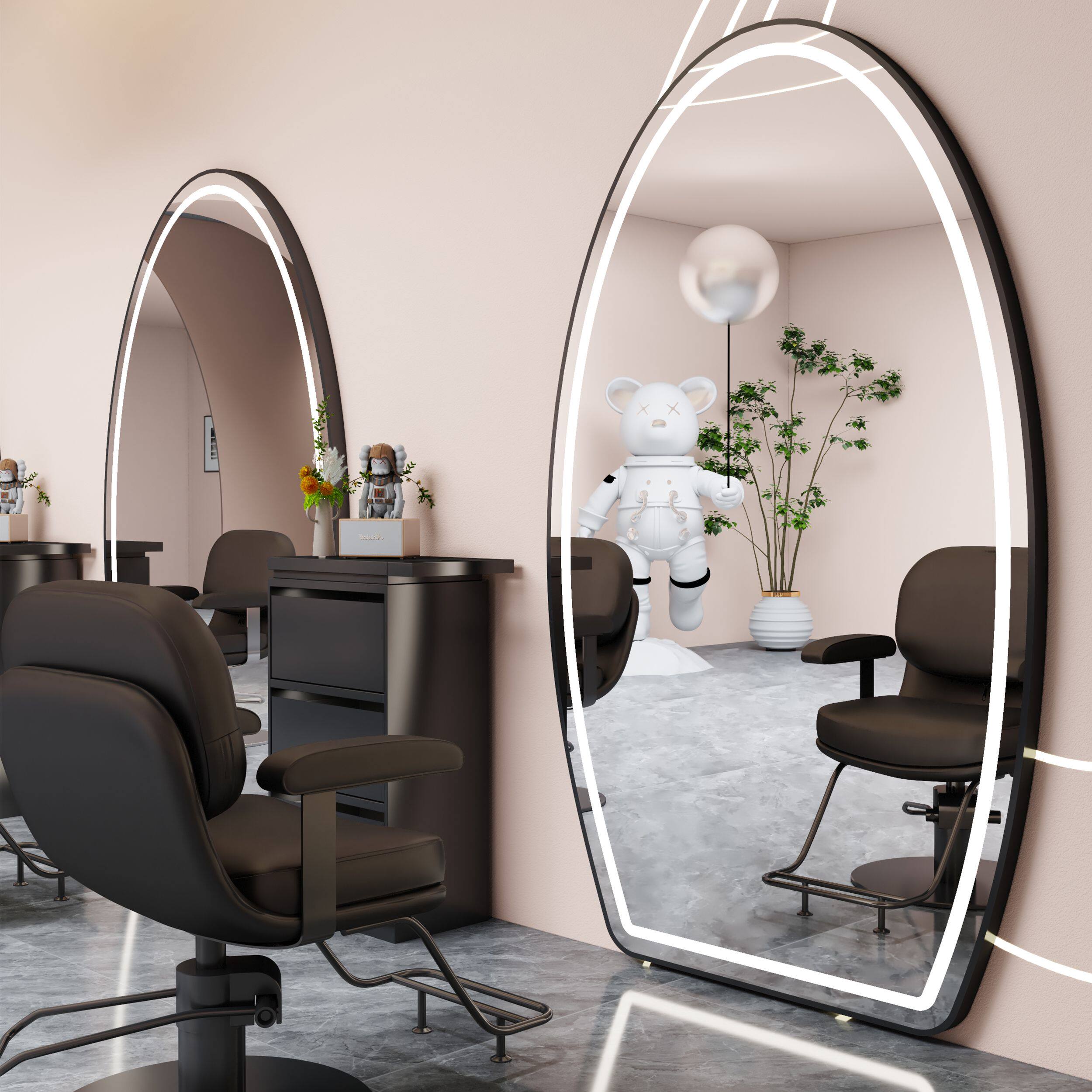 高端网红理发店镜子发廊专用镜台简约挂墙剪发镜落地镜台椭圆镜子