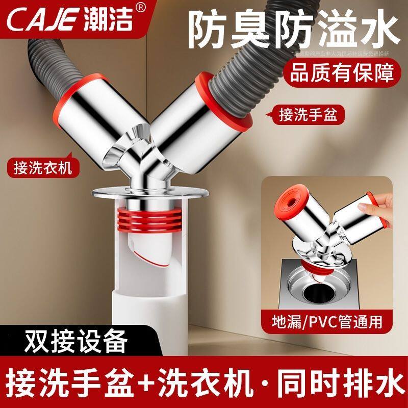 潮洁洗衣机下水管三通分水器洗手盆下水道三通排水管分流器一分二