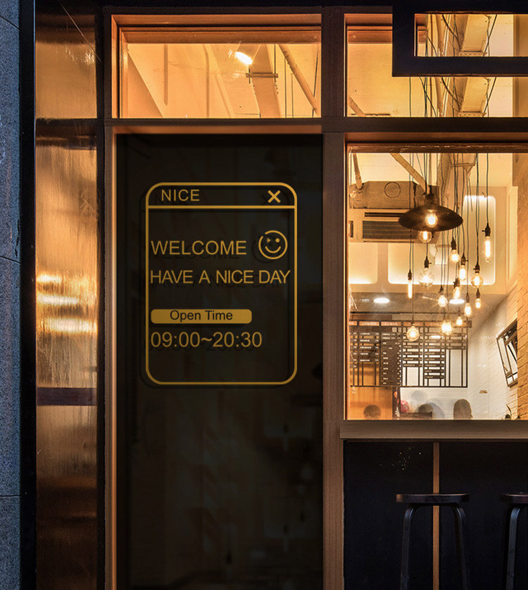 简约营业时间玻璃橱窗贴纸墙贴自粘金色ins休闲奶茶餐厅装饰创意
