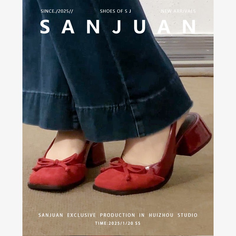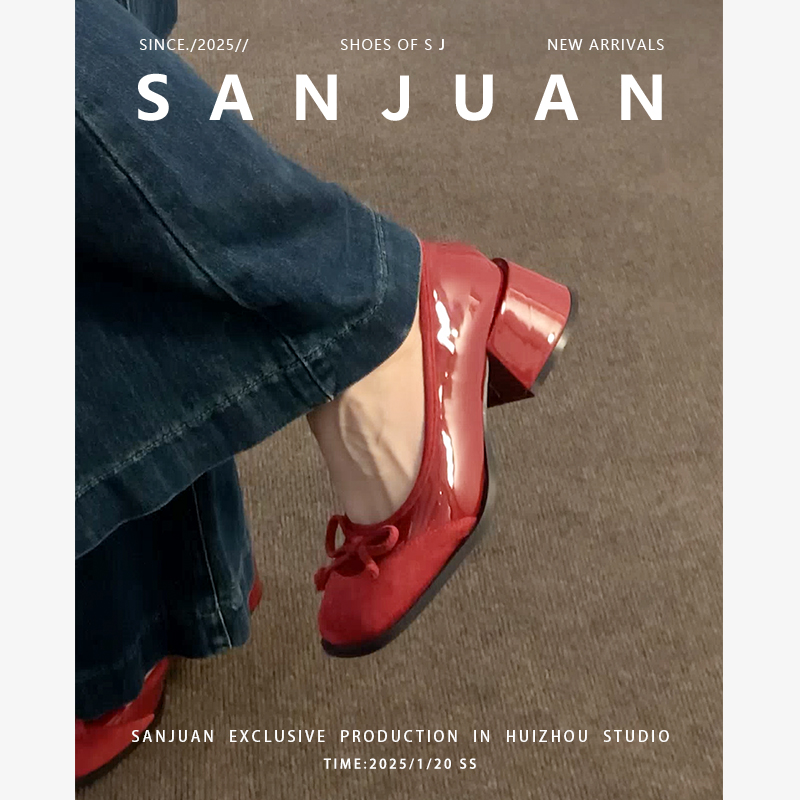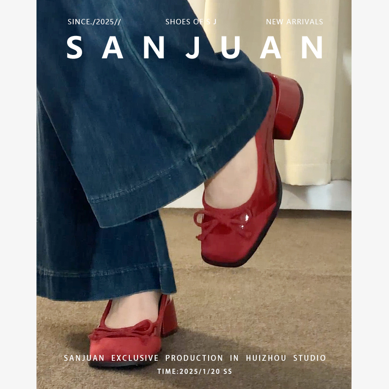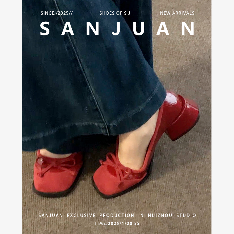 羊皮版sanjuan三卷玛丽珍单鞋红色婚鞋中跟小皮鞋粗跟秀禾高跟鞋