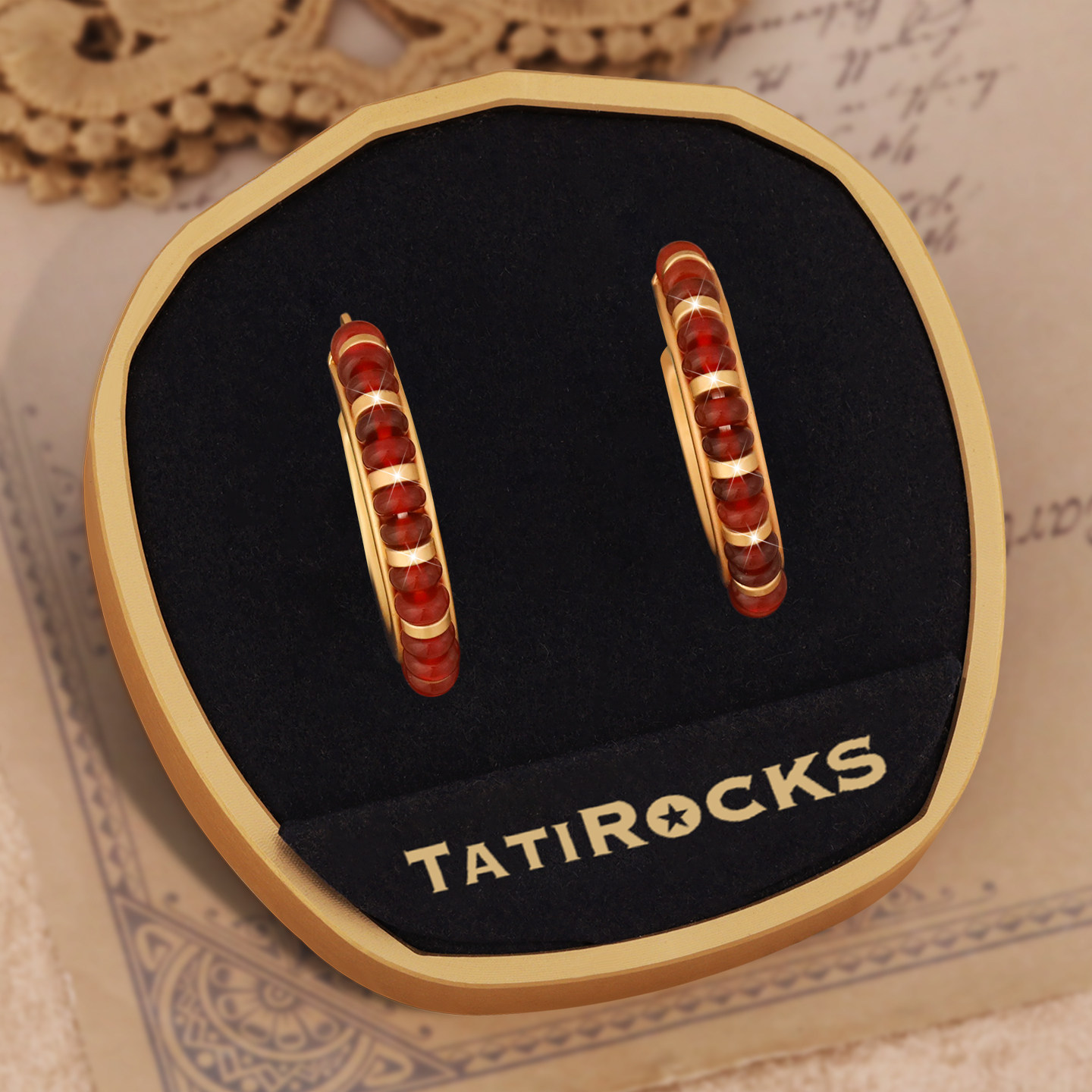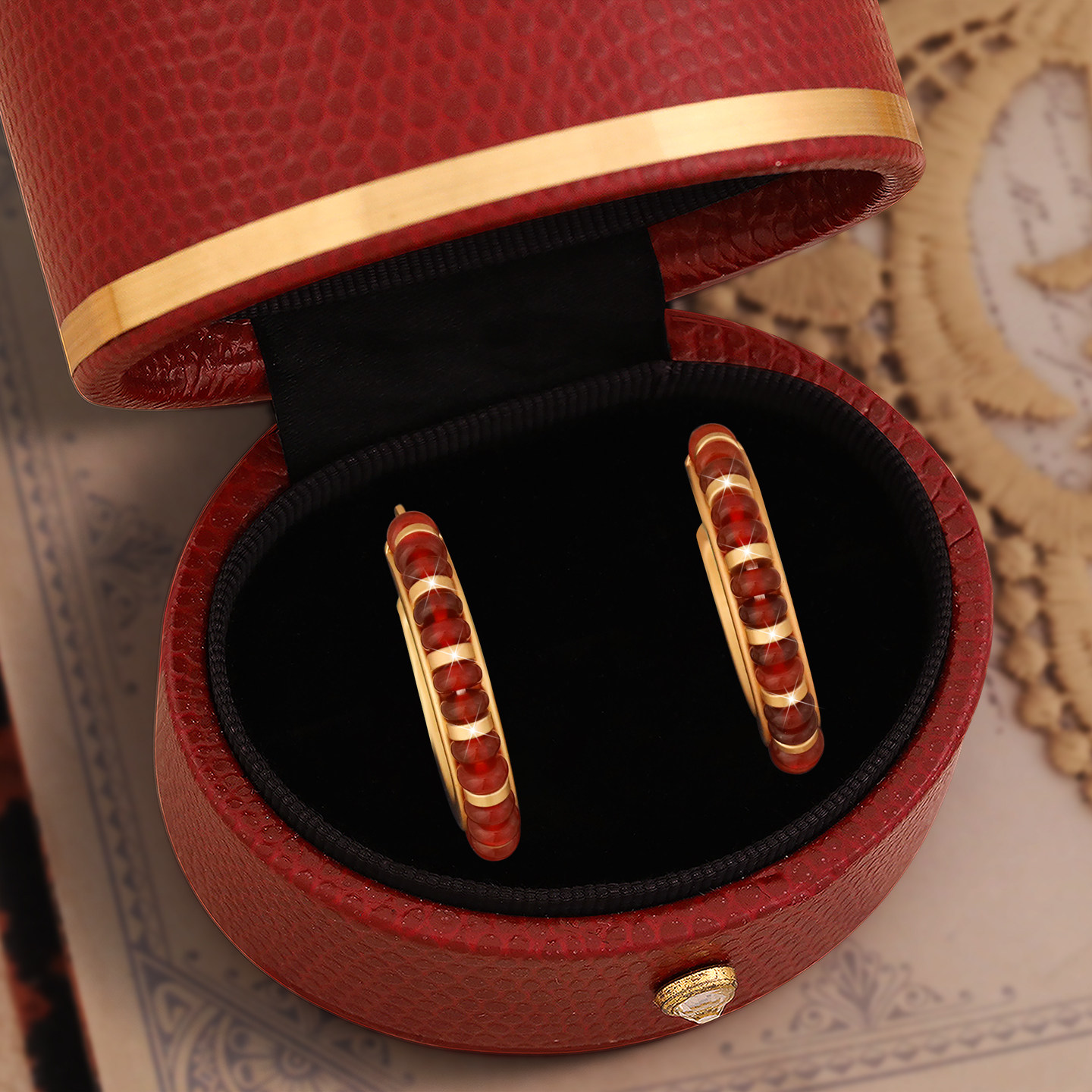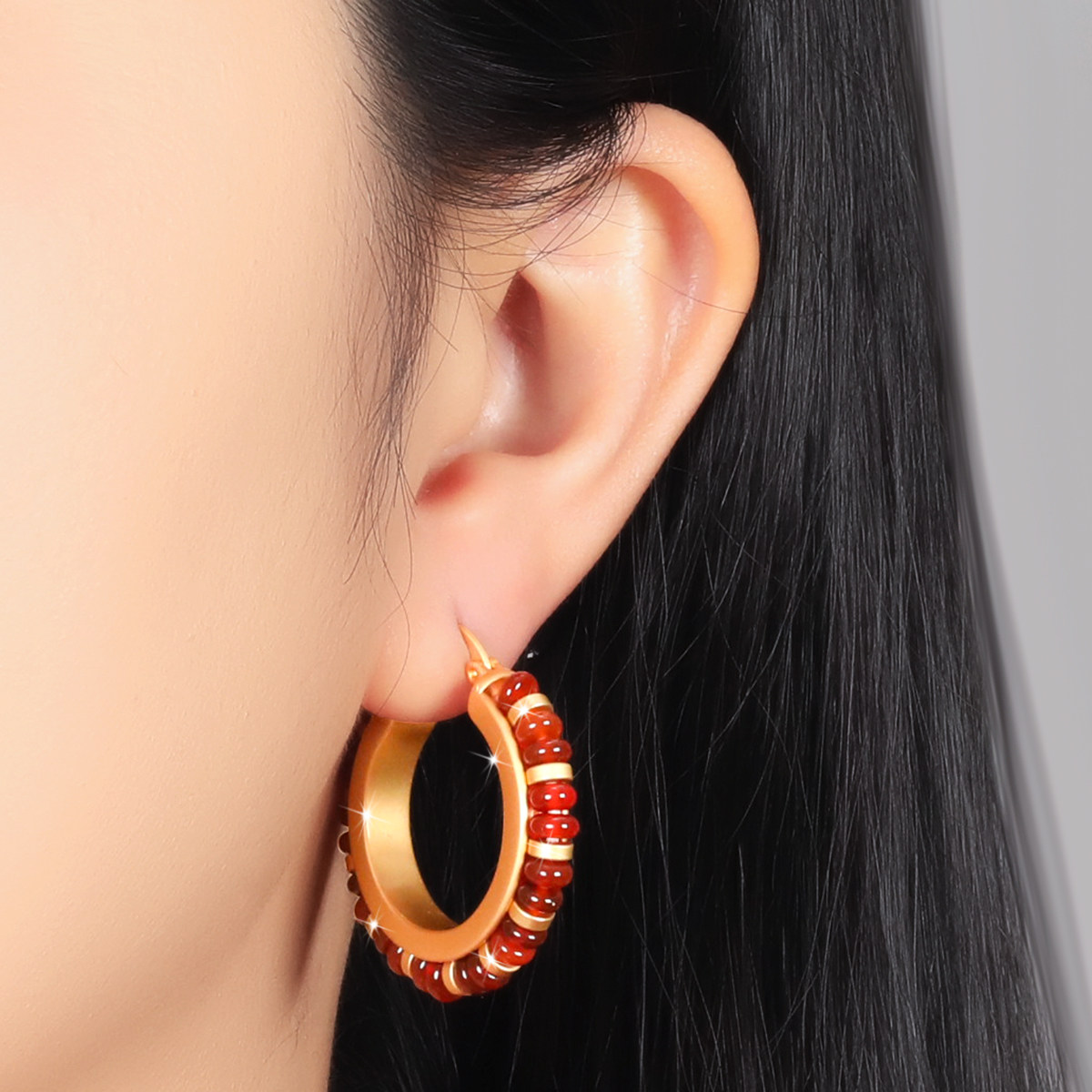 丹麦【设计师】Tatirocks红玛瑙圆圈耳钉高级感轻奢耳环珍玩摆件