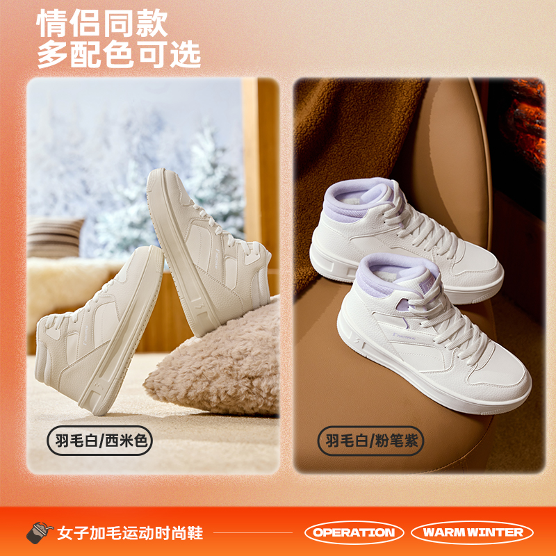 361加绒鞋女鞋运动鞋2025冬季棉鞋加毛保暖鞋休闲鞋子高帮板鞋女