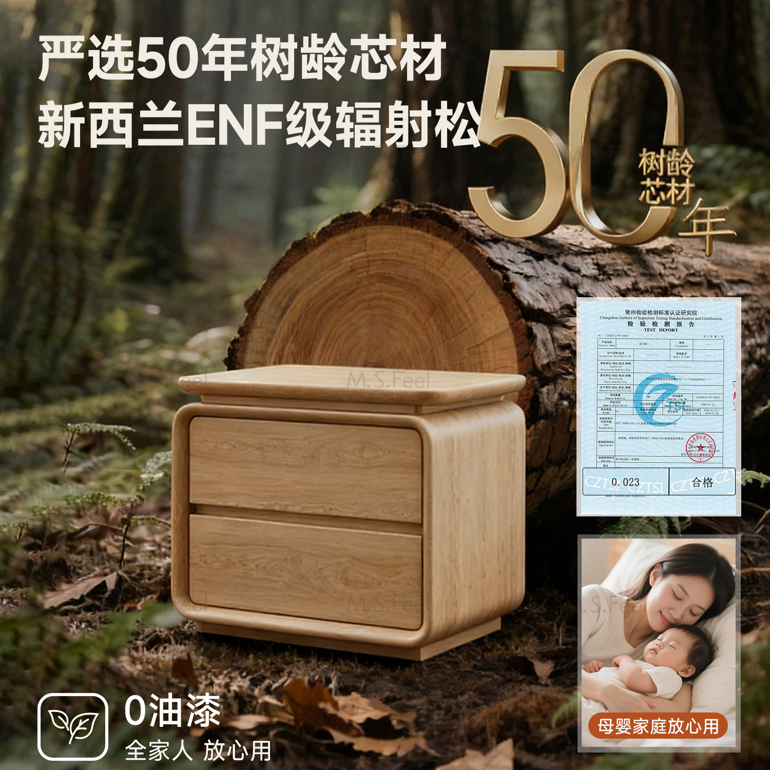 床头柜实木2026新款家用卧室小型轻奢高级感中古奶油风置物收纳柜