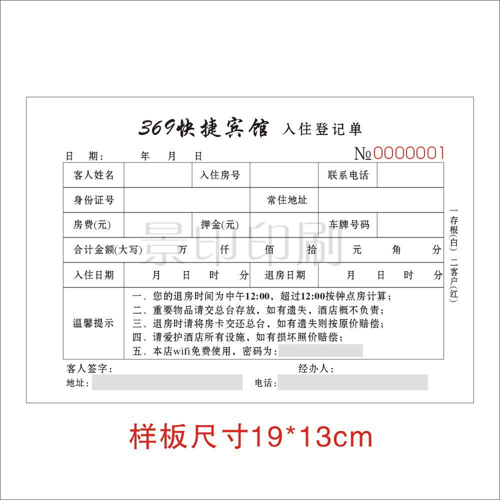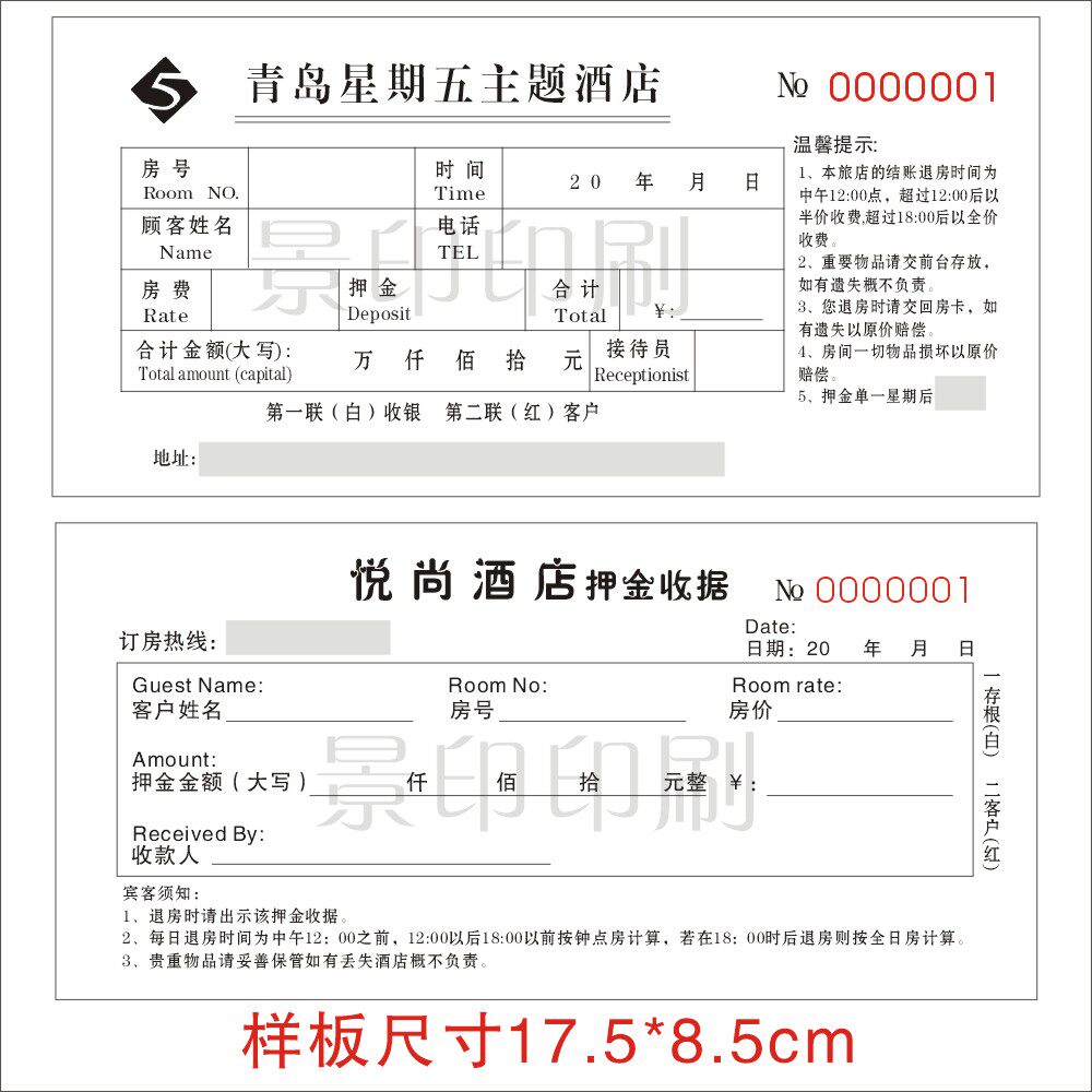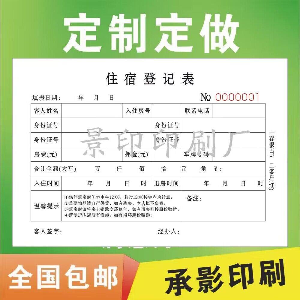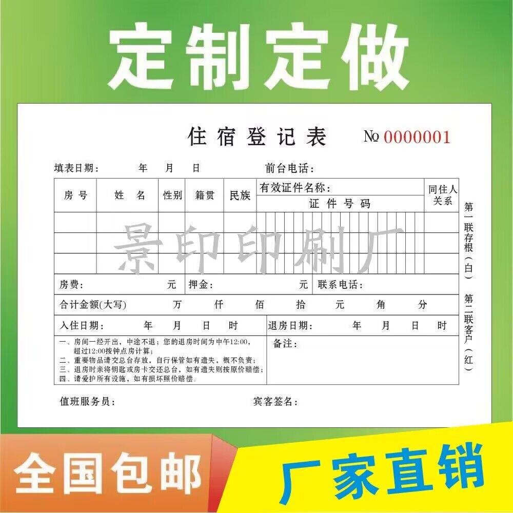 定做酒店入住登记单 宾馆单据 二联单 入住押金单 收款单 结账单
