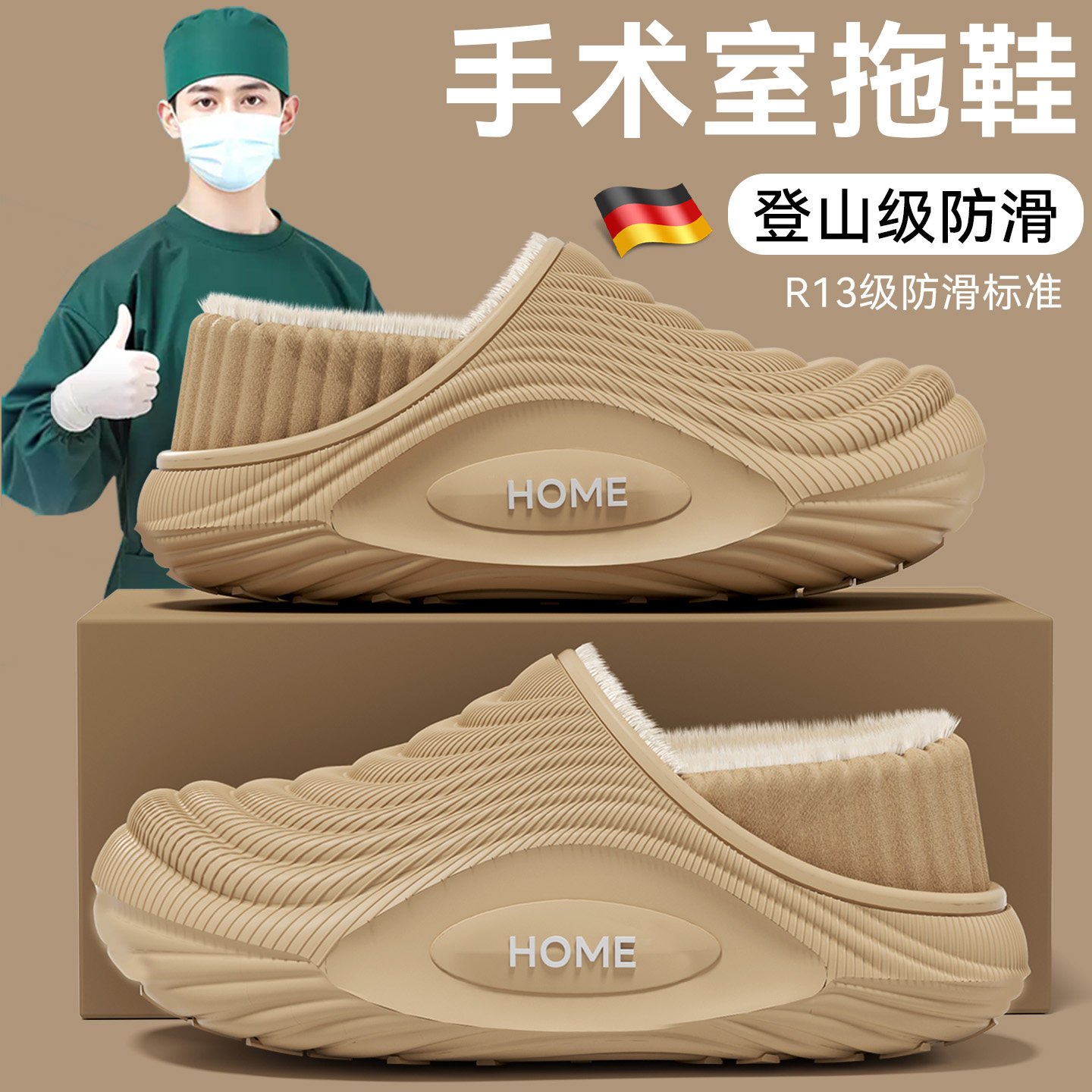医用手术室包跟棉拖鞋男士冬季情侣居家防滑外穿加绒加厚保暖棉鞋