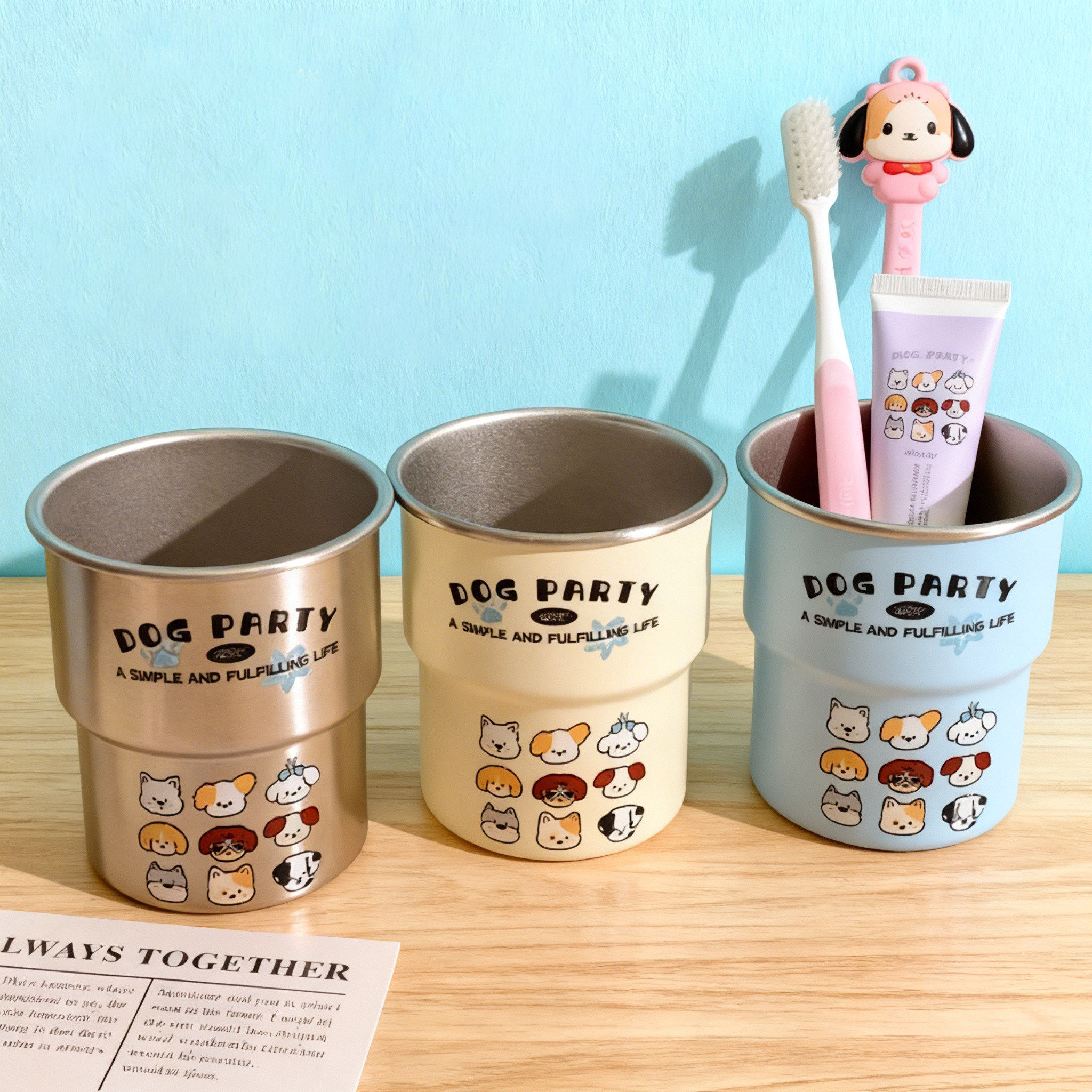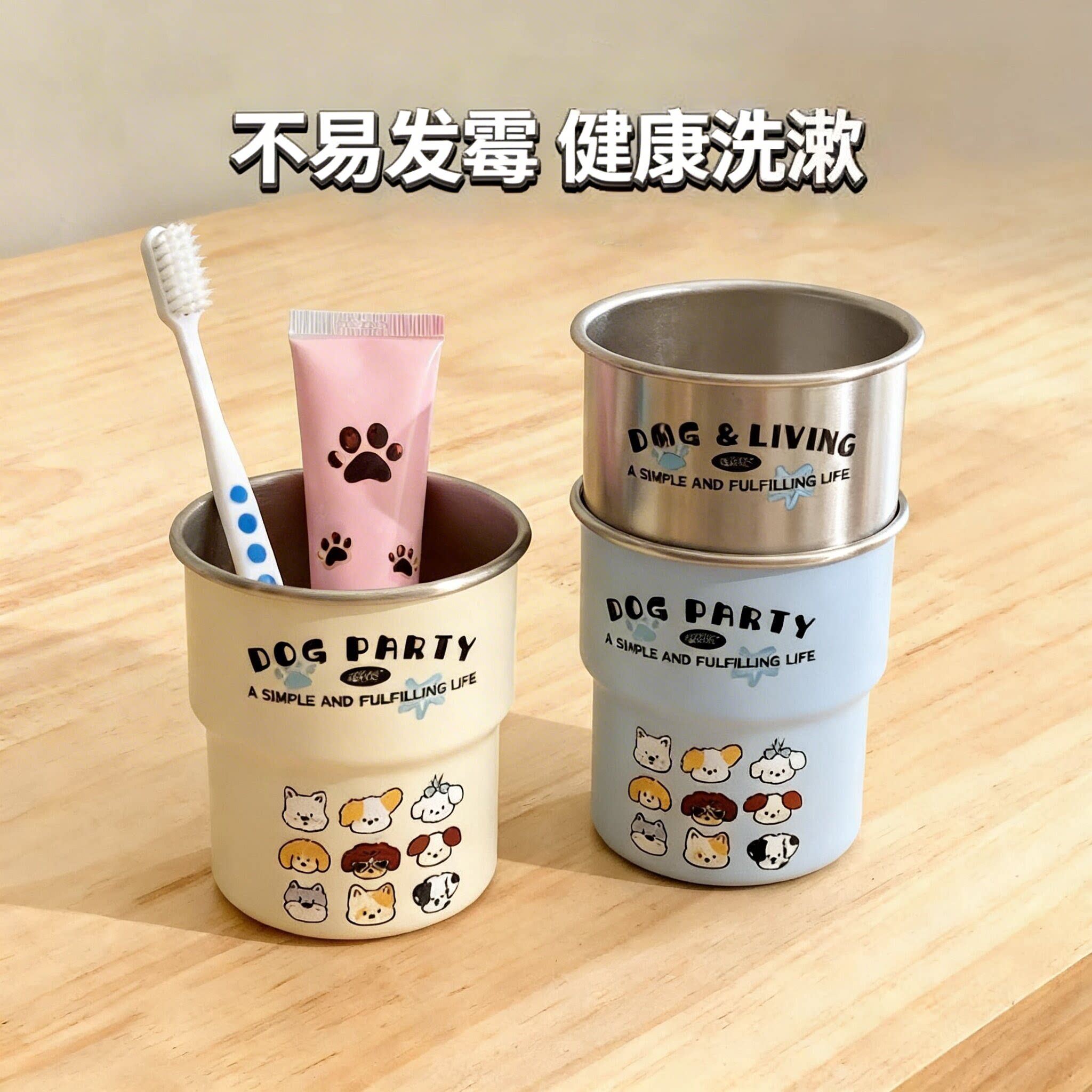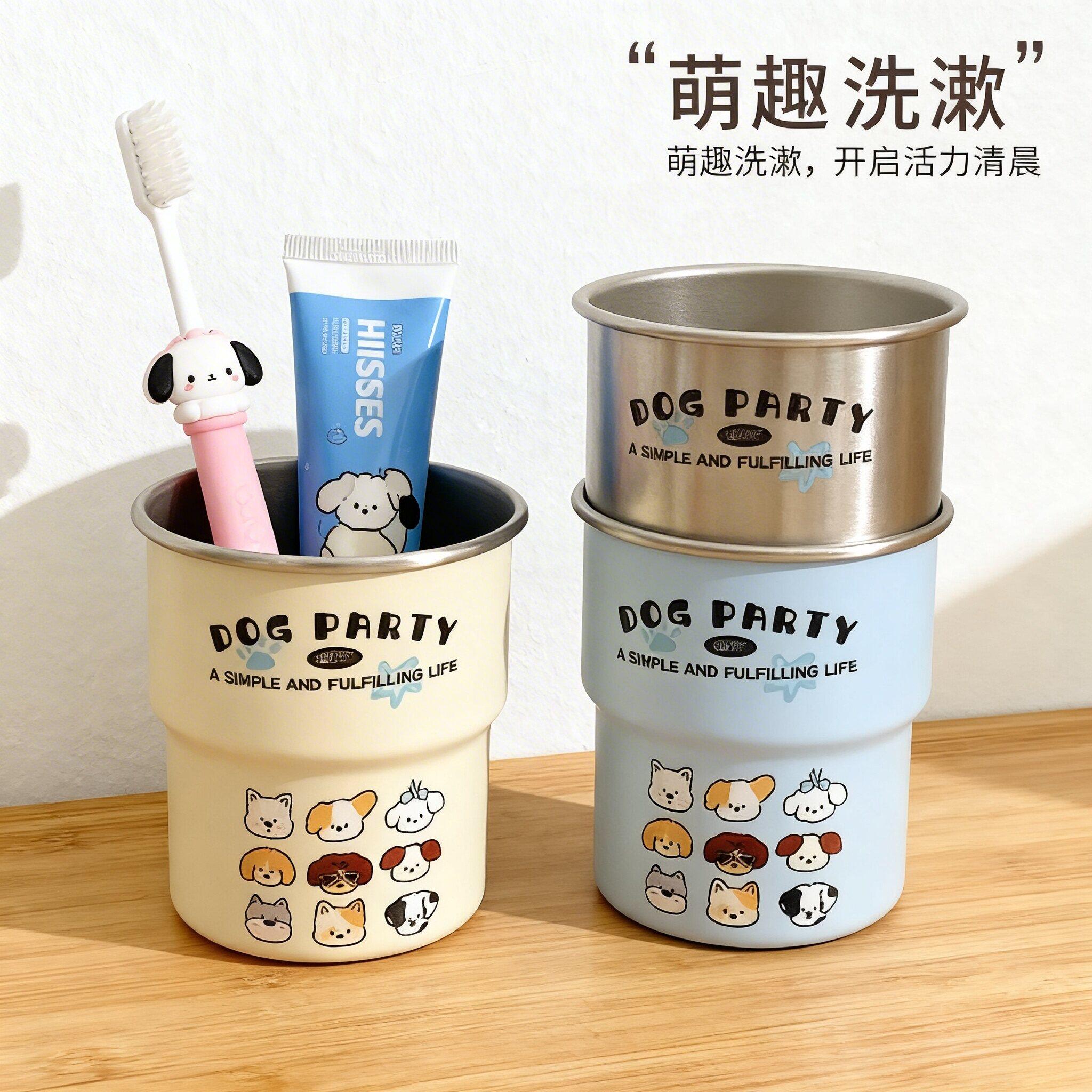 不锈钢阶梯原创卡通小狗家族洗漱杯简约家用高颜值情侣漱口杯