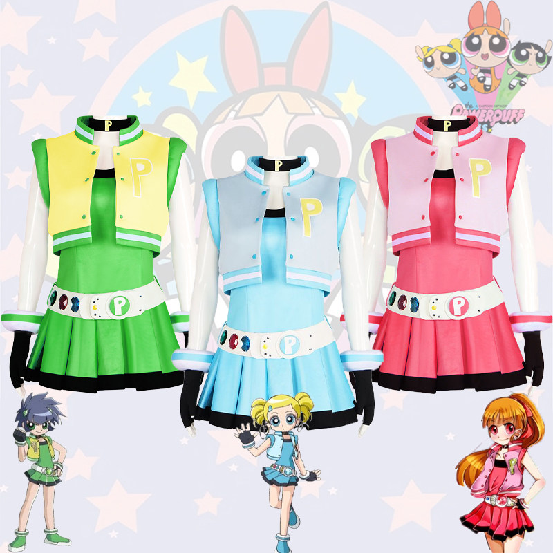 飞天小女警Z超能花花cos服 花花泡泡毛毛学院风百褶裙cosplay服装