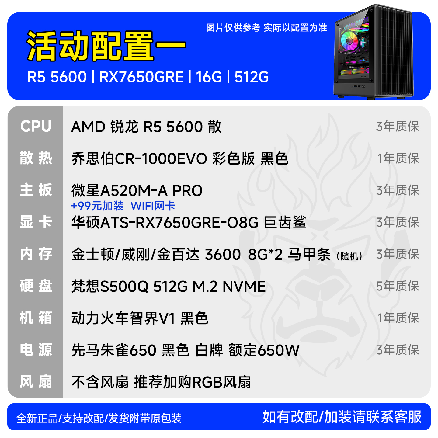华硕ATS-RX7650GRE-O8G巨齿鲨游戏主机diy电脑装机猿自营电竞馆