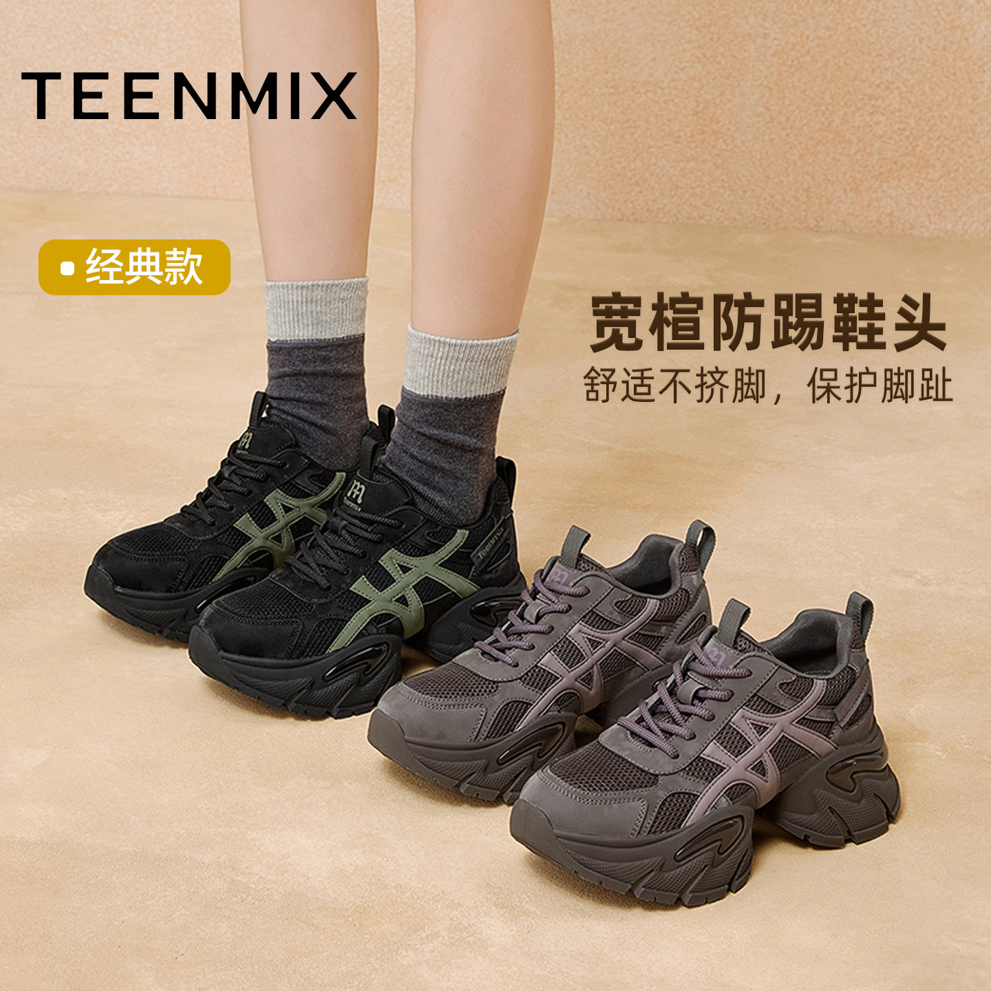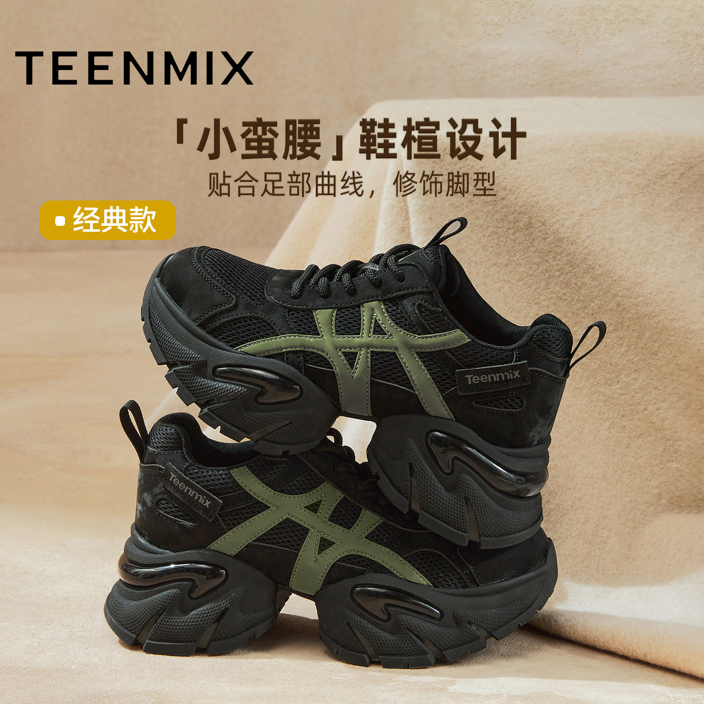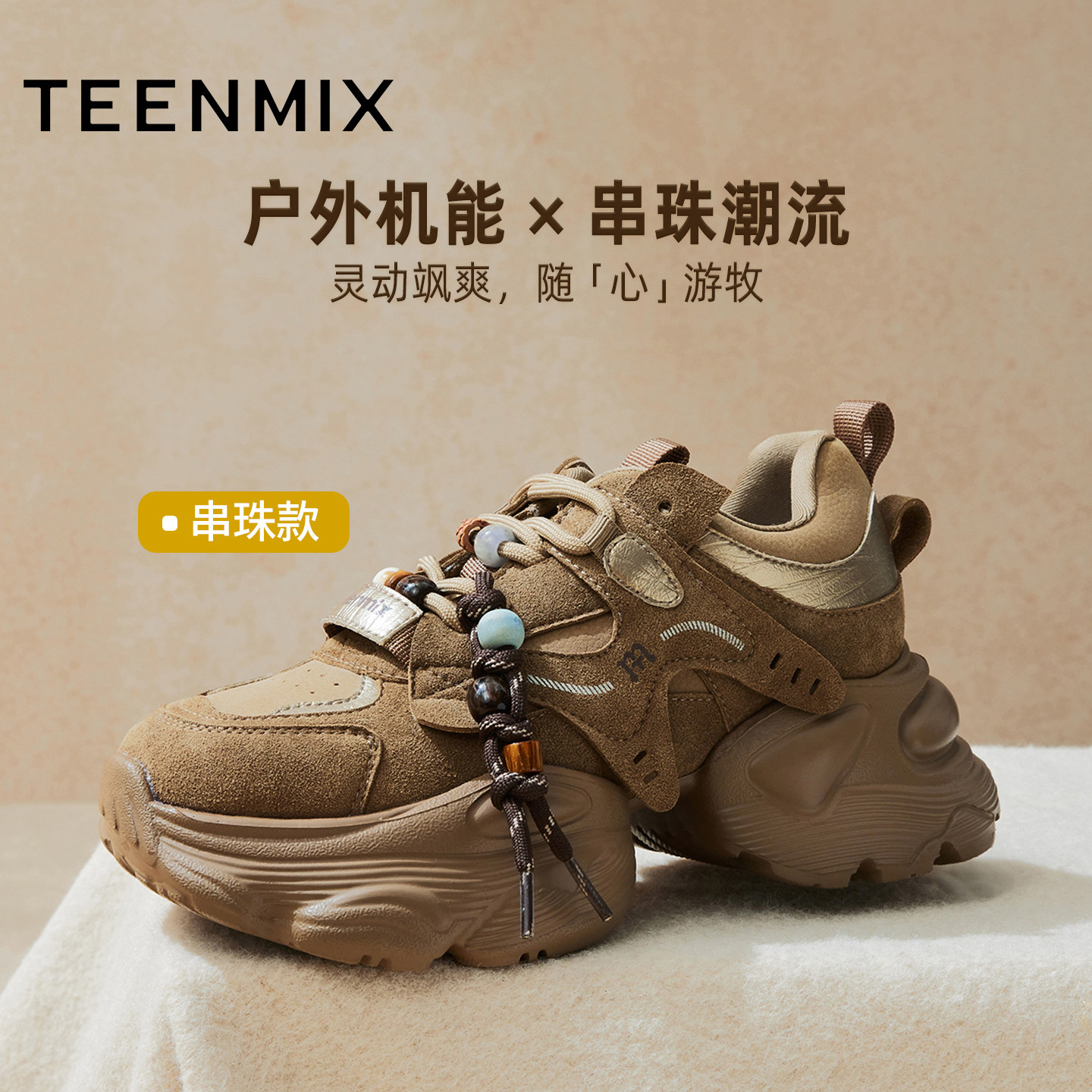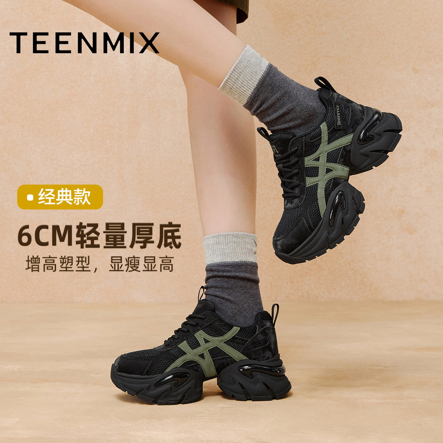 天美意厚底增高复古老爹鞋运动鞋女鞋子加绒高帮休闲鞋2025秋新款